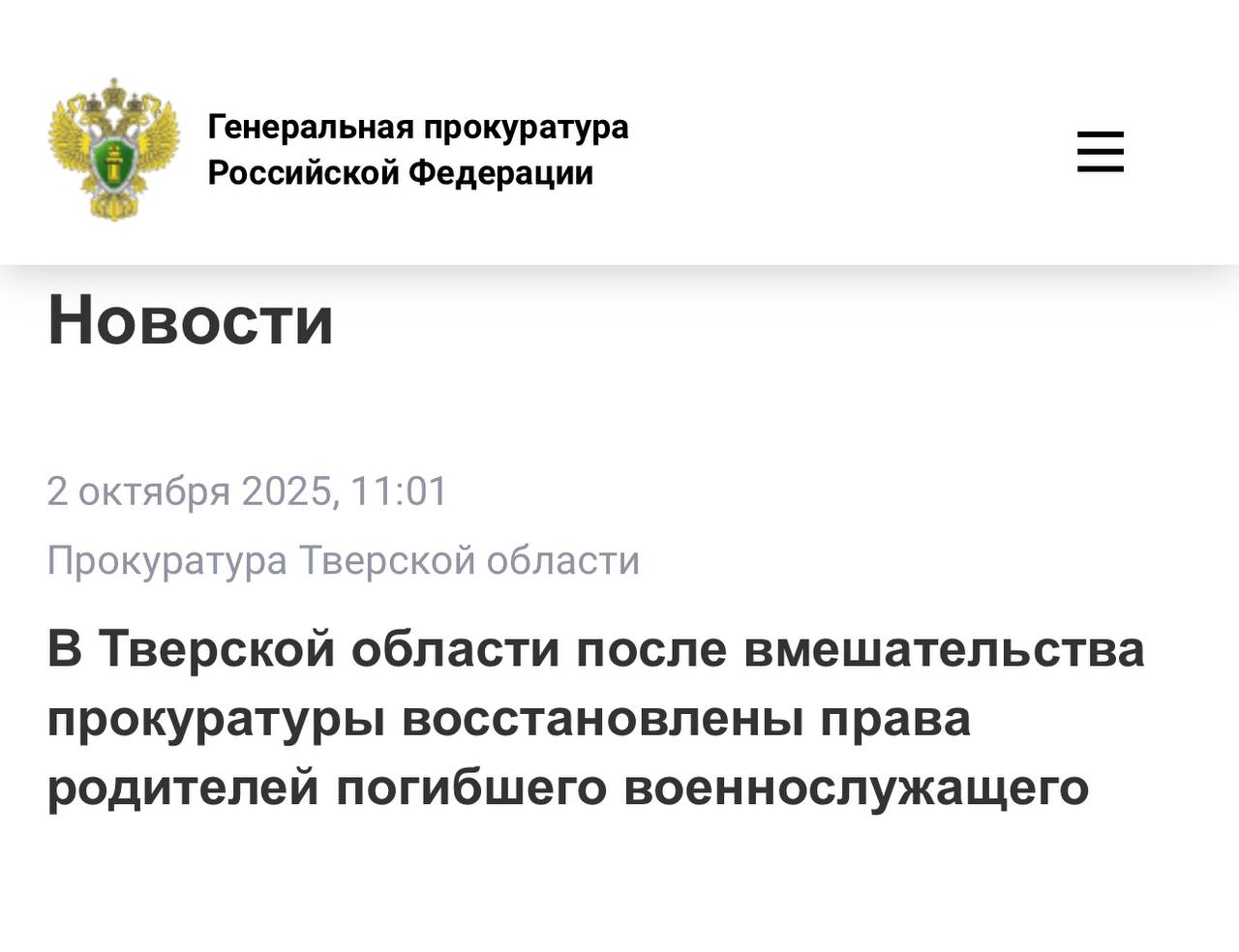 Прокуратурой Весьегонского района Тверской области по обращению родителей погибшего участника специальной военной операции, имеющего государственные награды, в том числе медаль «За отвагу» и орден Мужества, проведена проверка соблюдения прав на пенсионное обеспечение.