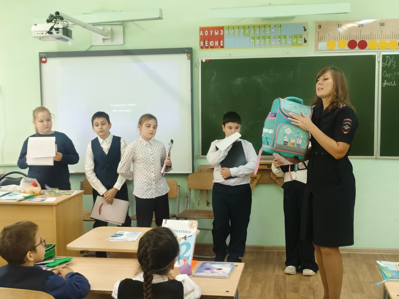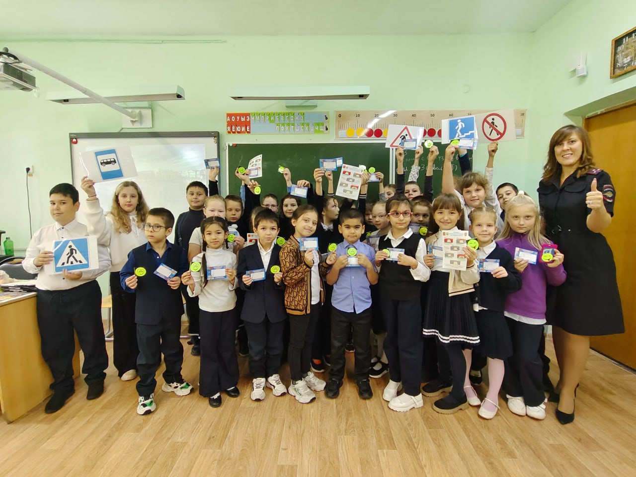 В конце мероприятия ЮИДовцы и сотрудники полиции вручили ребятам удостоверения юных пешеходов, памятки по ПДД и световозвращающие наклейки, которые они прикрепят себе на одежду или рюкзак, а ученики в свою очередь пообещали всем присутствующим соблюдать Правила дорожного движения, быть внимательными и аккуратными на проезжей части.