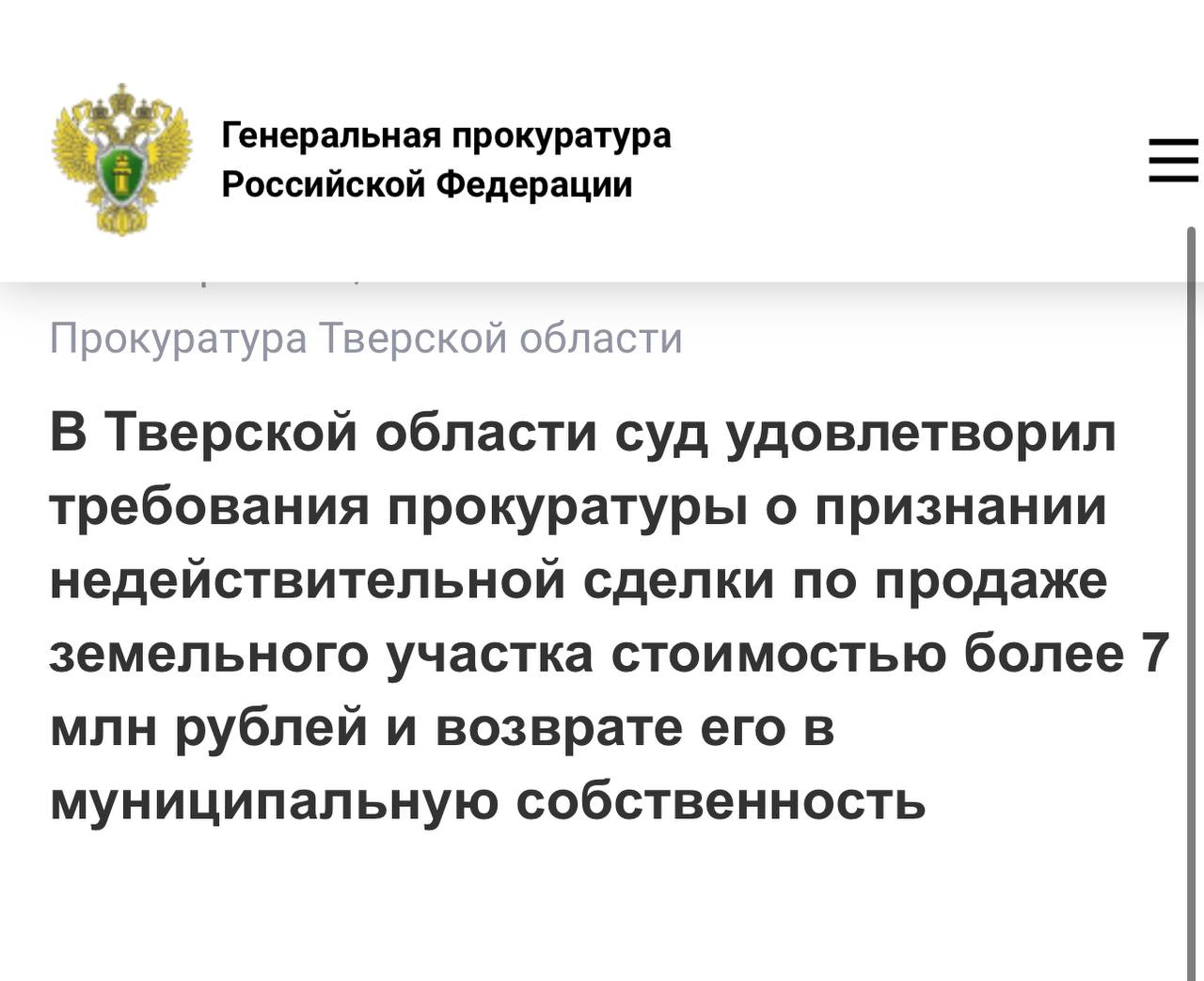 Установлено, что между администрацией Кувшиновского муниципального округа Тверской области и жителем города Конаково без проведения торгов заключен договор купли-продажи земельного участка площадью 3 га, предназначенного для организации дорожного отдыха.