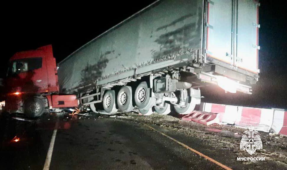 Пострадавших нет, в результате происшествия перекрыто движение на участке автодороги.