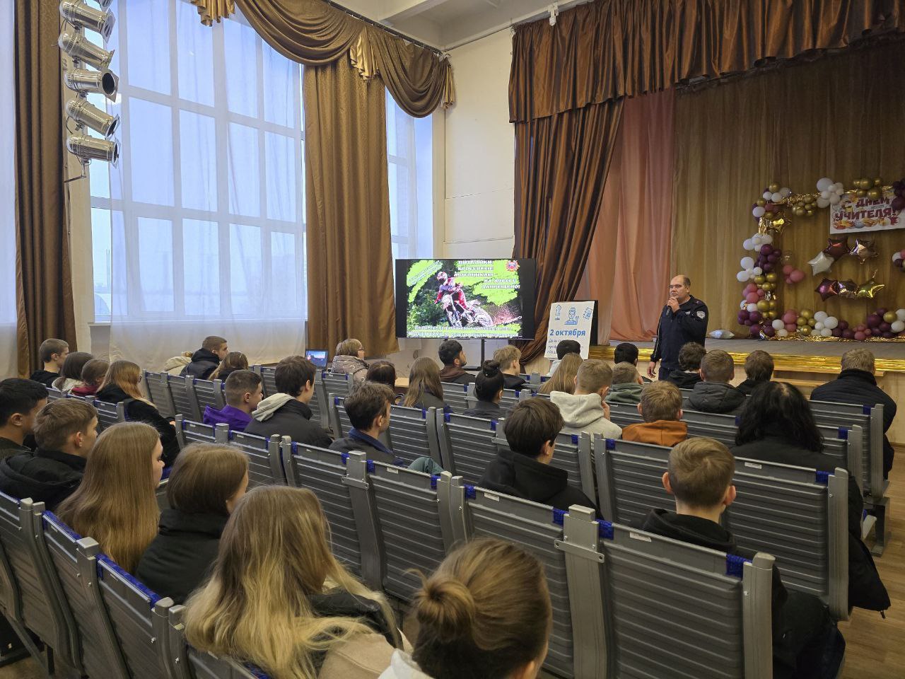 09 октября инспектор по пропаганде БДД довел до ребят анализ аварийности в городе, привел примеры нарушений, которые стали следствием аварий с тяжкими последствиями. Особое внимание было обращено на недопустимость управления транспортными средствами в состоянии опьянения, а также лицами, не имеющими права управления транспортными средствами.