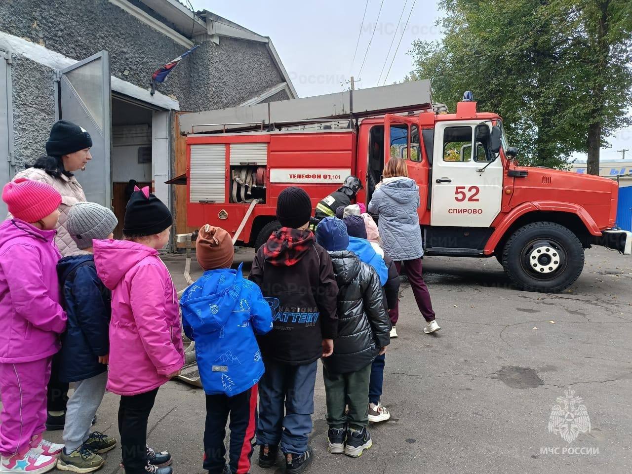Воспитанники дошкольной учреждения "Сказка" побывали на экскурсии в 52 ПСЧ посёлка Спирово.
