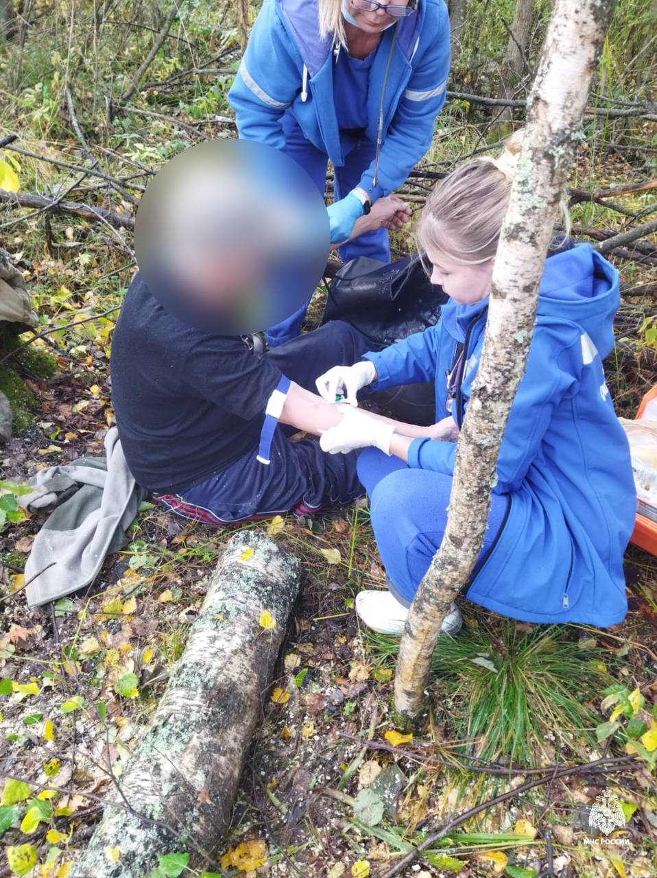 Карета скорой помощи не могла проехать в лесном массиве. Специалисты оказали помощь в транспортировке пострадавшего до автомобиля.