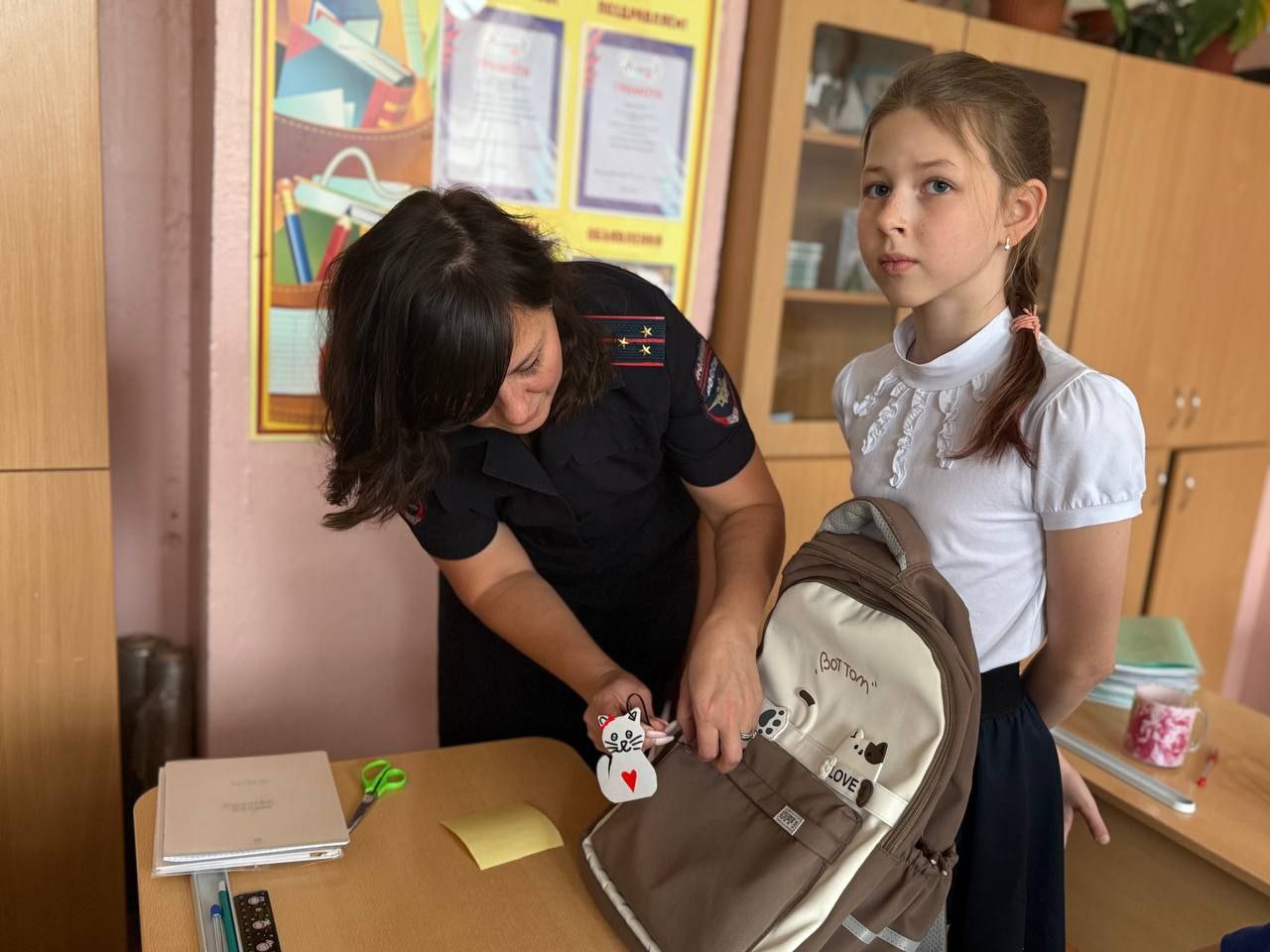 Затем ребята совместно с полицейскими приступили к изготовлению брелоков, используя для этого специальные световозвращающие материалы. Яркий и простой в изготовлении световозвращатель вызвал большой интерес у участников мероприятия. Ребята очень творчески подошли к работе, проявив старание и фантазию в изготовлении собственных авторских брелоков. Готовые брелоки ребята разместили на своих рюкзаках.