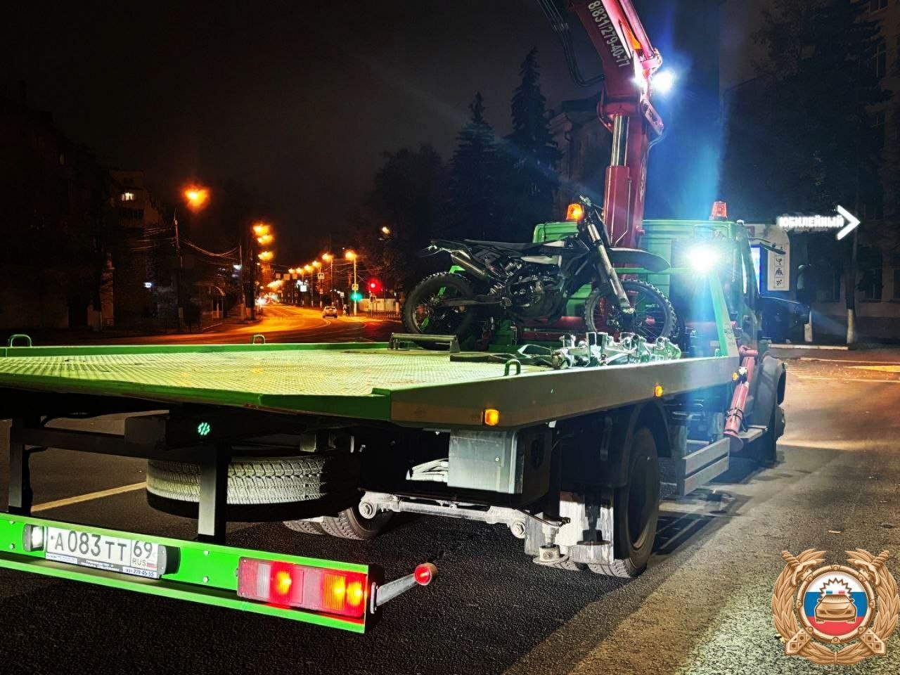 В Твери пьяный водитель, не имеющий водительского удостоверения, рассекал на мотоцикле по улицами города