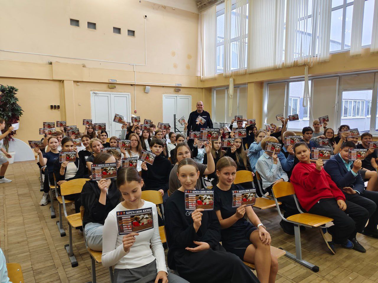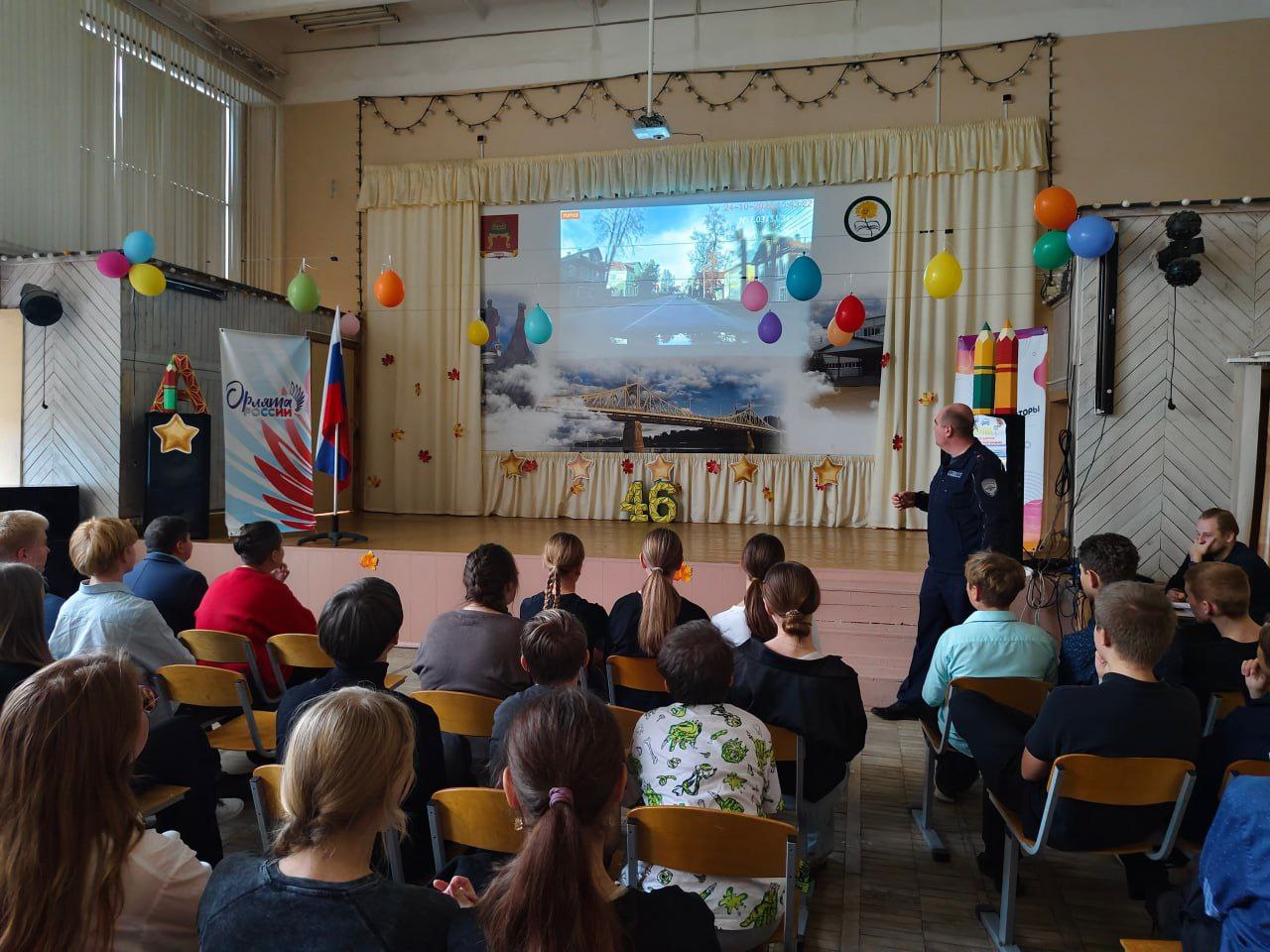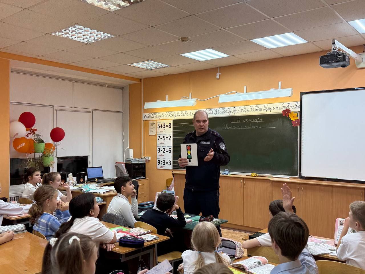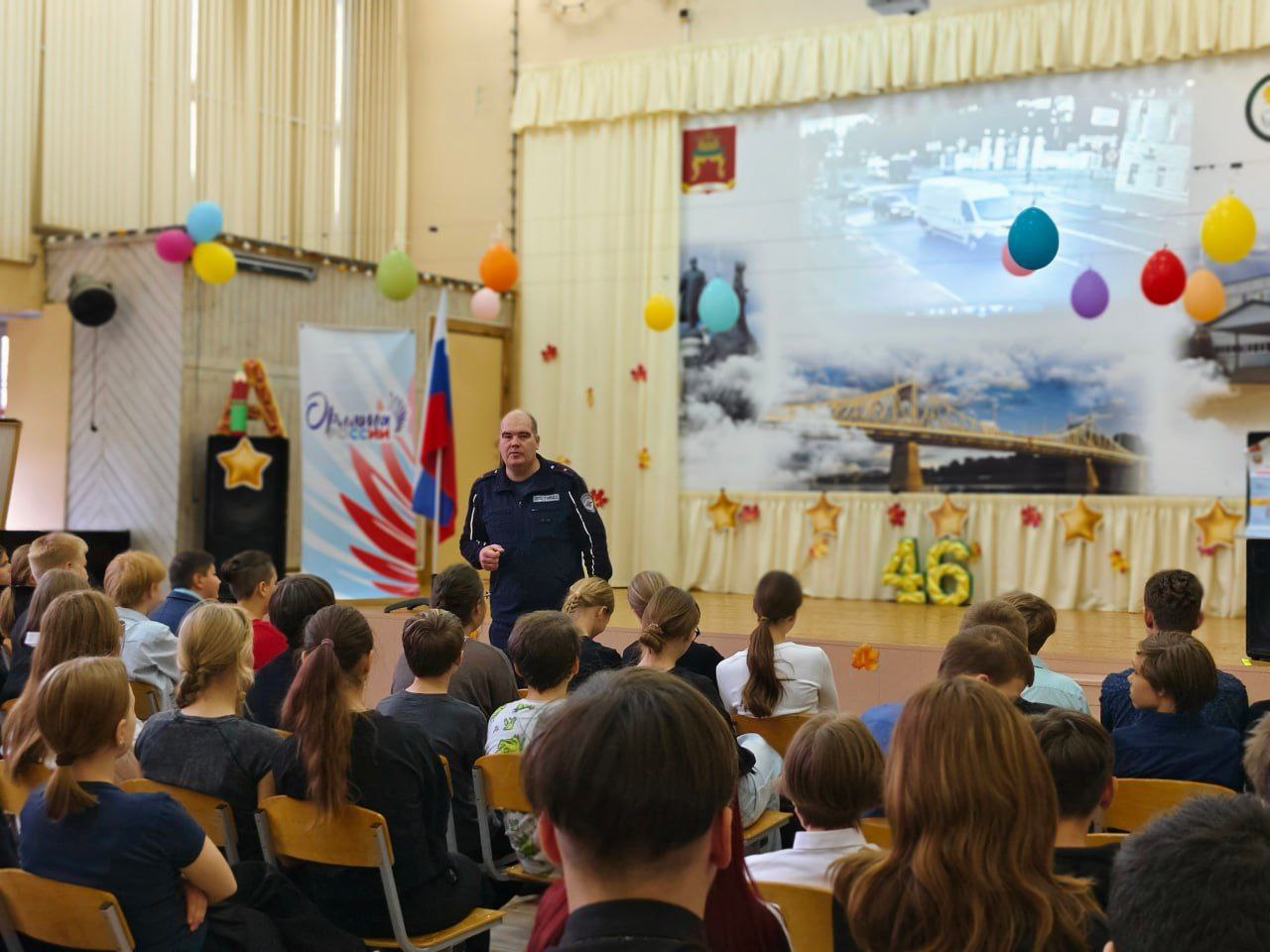 Перед школьными каникулами сотрудники Госавтоинспекции города Твери провели уроки безопасности для учеников СОШ № 45 и СОШ № 46