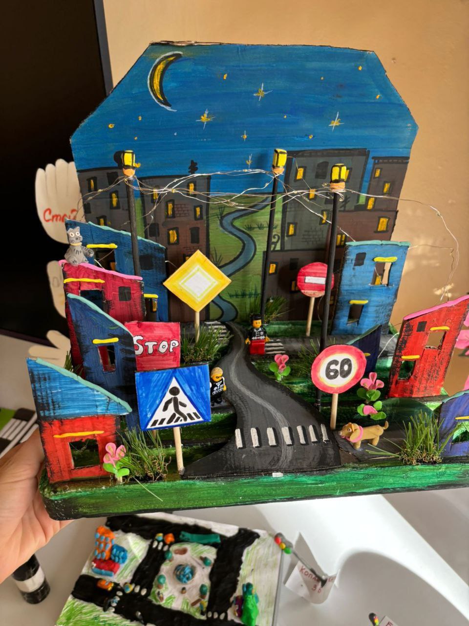 Учащиеся средней школы 46 города Твери сделали выставку поделок и рисунков по ПДД «Безопасная дорога»