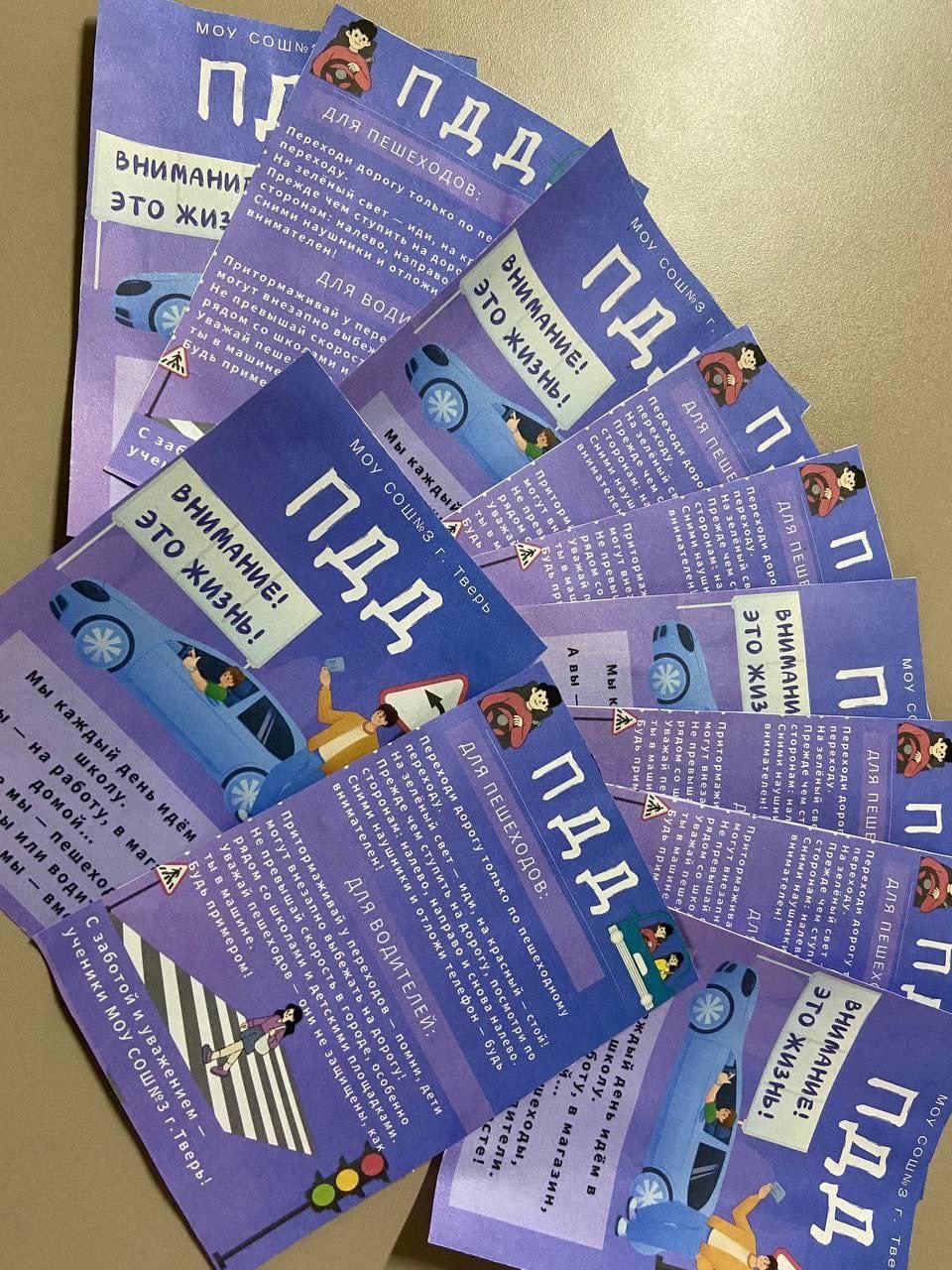 Ребята из отряда ЮИД СОШ № 3 города Твери вышли на улицы города, вблизи учебной организации, чтобы напомнить всем о важности безопасного поведения на дорогах. Юные инспекторы движения раздали жителям памятки с полезными советами по Правилам дорожного движения и напомнили, как важно всегда быть внимательными и носить световозвращающие элементы.