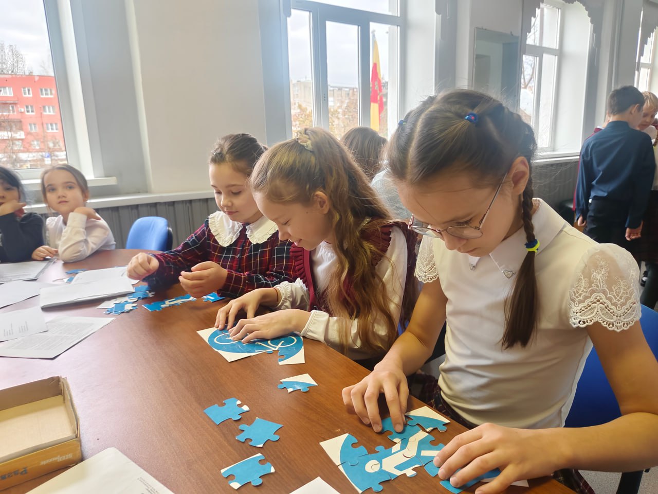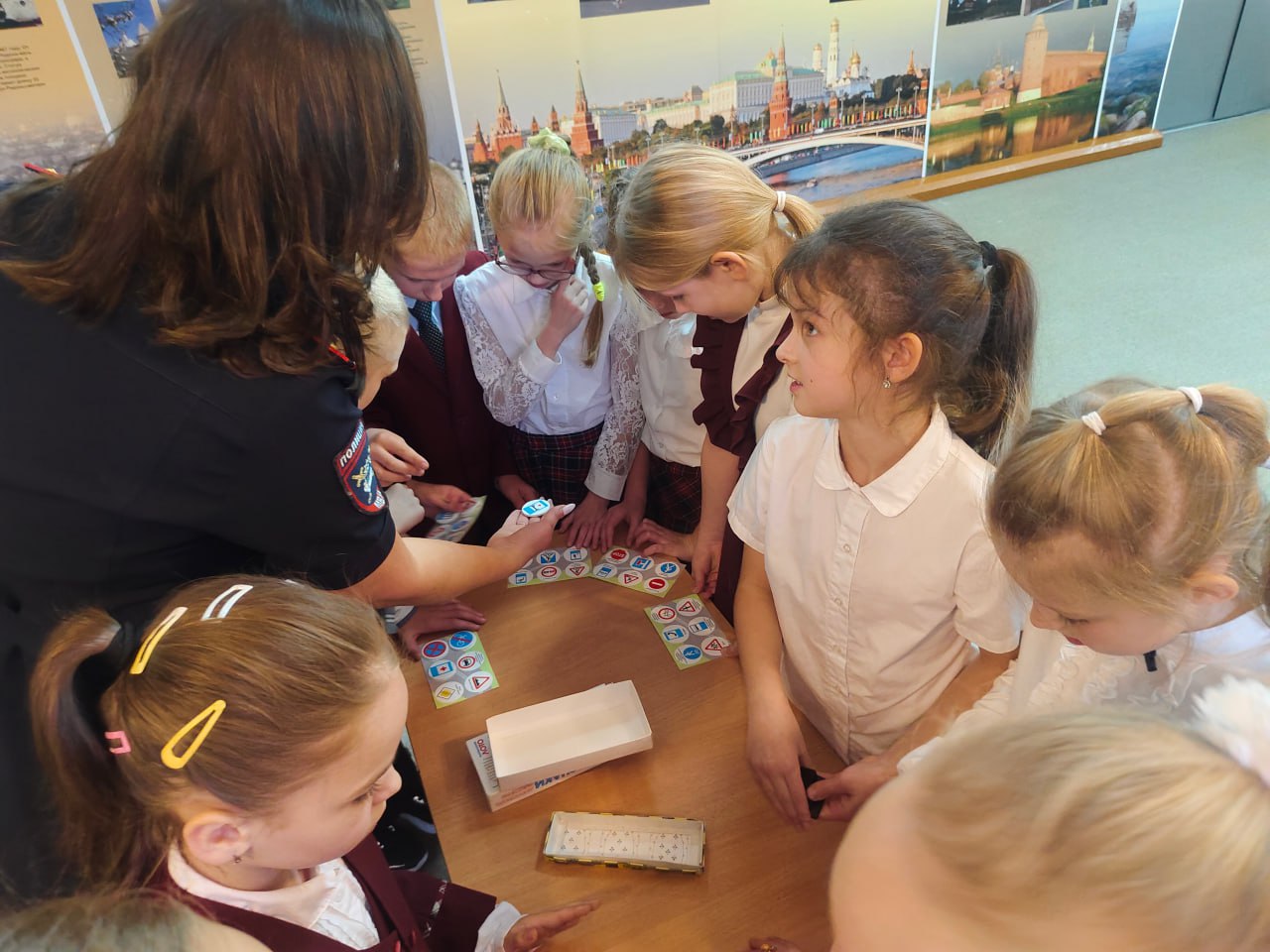 23 октября сотрудники отдела Госавтоинспекции УМВД России по городу Твери в Гимназии №10 для учащихся 3-х классов подготовили и провели интерактивное мероприятия «Игра по правилам». В начале мероприятия ребята повторили основные правила поведения на дороге, затем разделились на четыре команды и соревновались в знании дорожных знаков, ребята собирали пазлы, играли в лото и домино, отвечали на вопросы по ПДД, разгадывали кроссворд, изучали устройство велосипеда и другое. Самым запоминающимся стал этап на знание устройства велосипеда, на котором ребятам было предложено по названию детали, на макете велосипеда показать, где она находится. Все команды справились с предложенными заданиями.