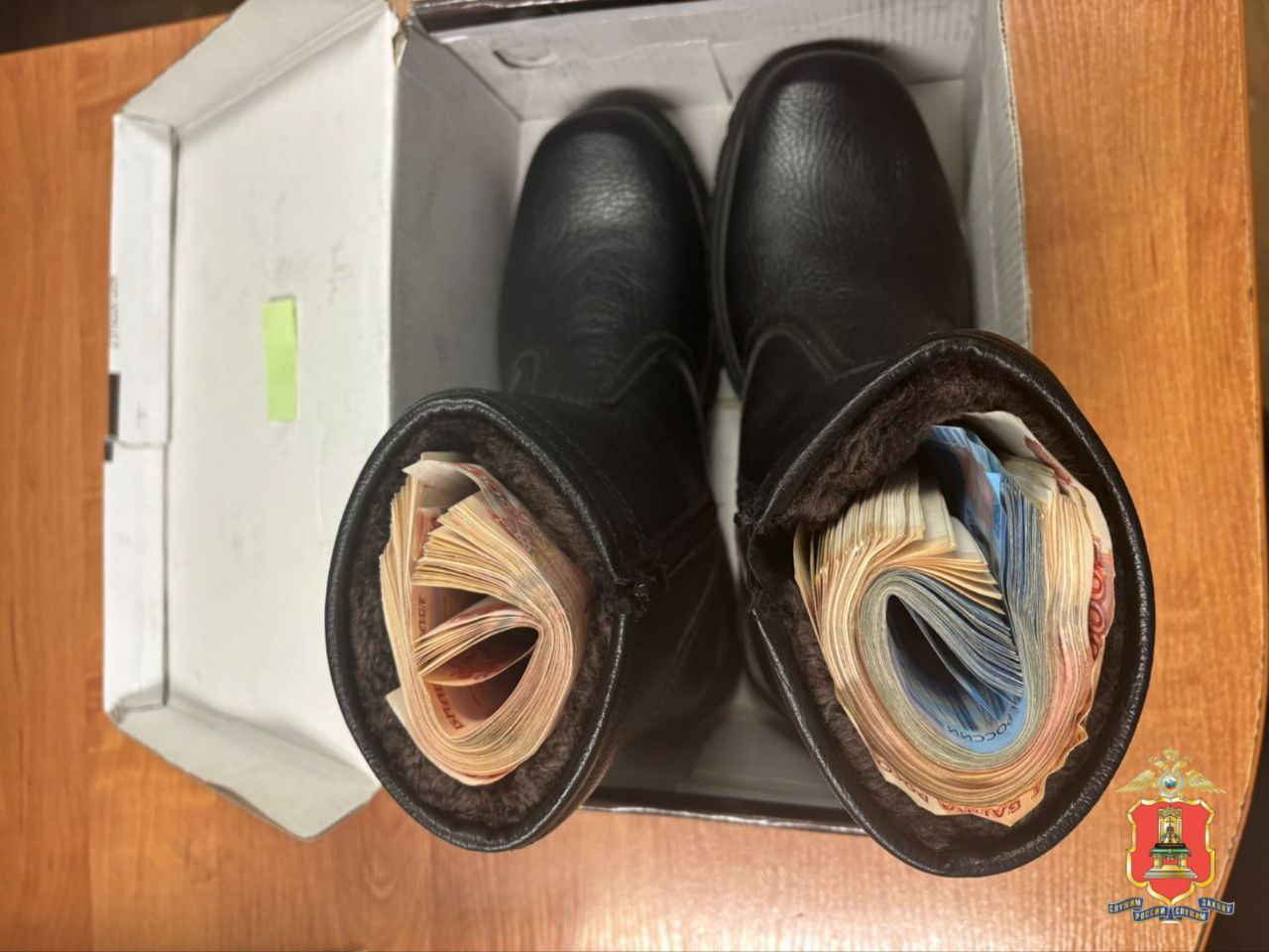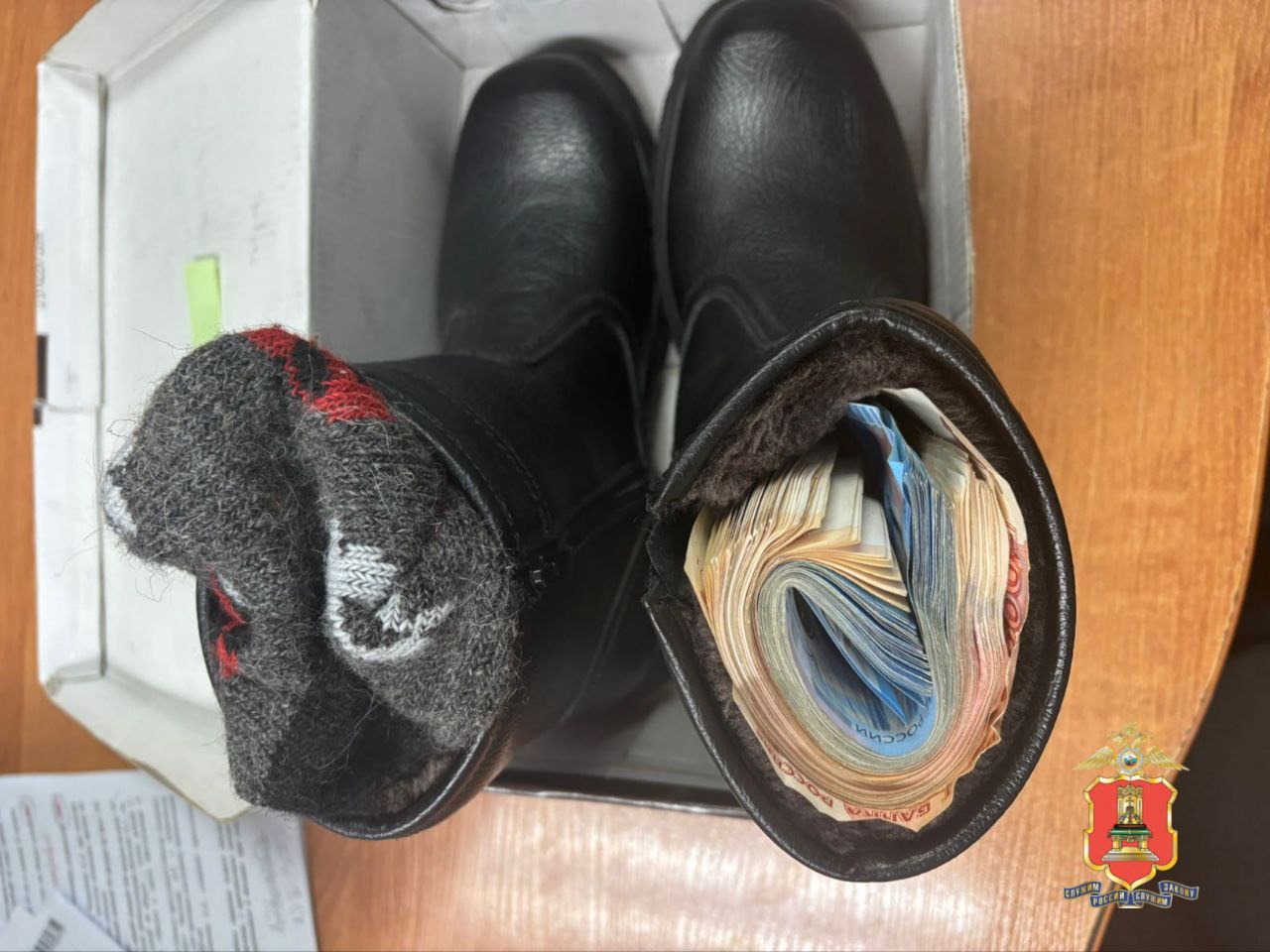 Внутри каждого ботинка находились деньги, предусмотрительно прикрытые вязаными носками - 1 миллион 160 тысяч рублей.