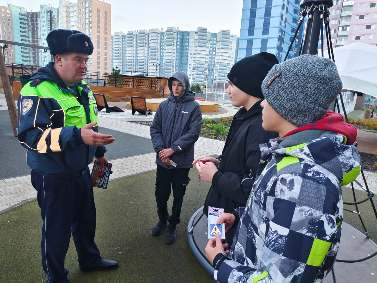 Сотрудники полиции посетили популярные места отдыха и игр подростков во дворах. В ходе живых бесед с ребятами, инспекторы напомнили о важности соблюдения Правил дорожного движения, особенностях поведения на дороге в осенний период, когда видимость становится хуже из-за погодных условий и раннего наступления темноты. Особое внимание уделялось необходимости использования световозвращающих элементов. Каждый участник беседы получил в подарок яркую световозвращающую подвеску. Эти небольшие, но крайне эффективные аксессуары, прикрепленные к рюкзаку, одежде или ключам, позволяют водителю заметить пешехода на значительном расстоянии – до 150-300 метров.