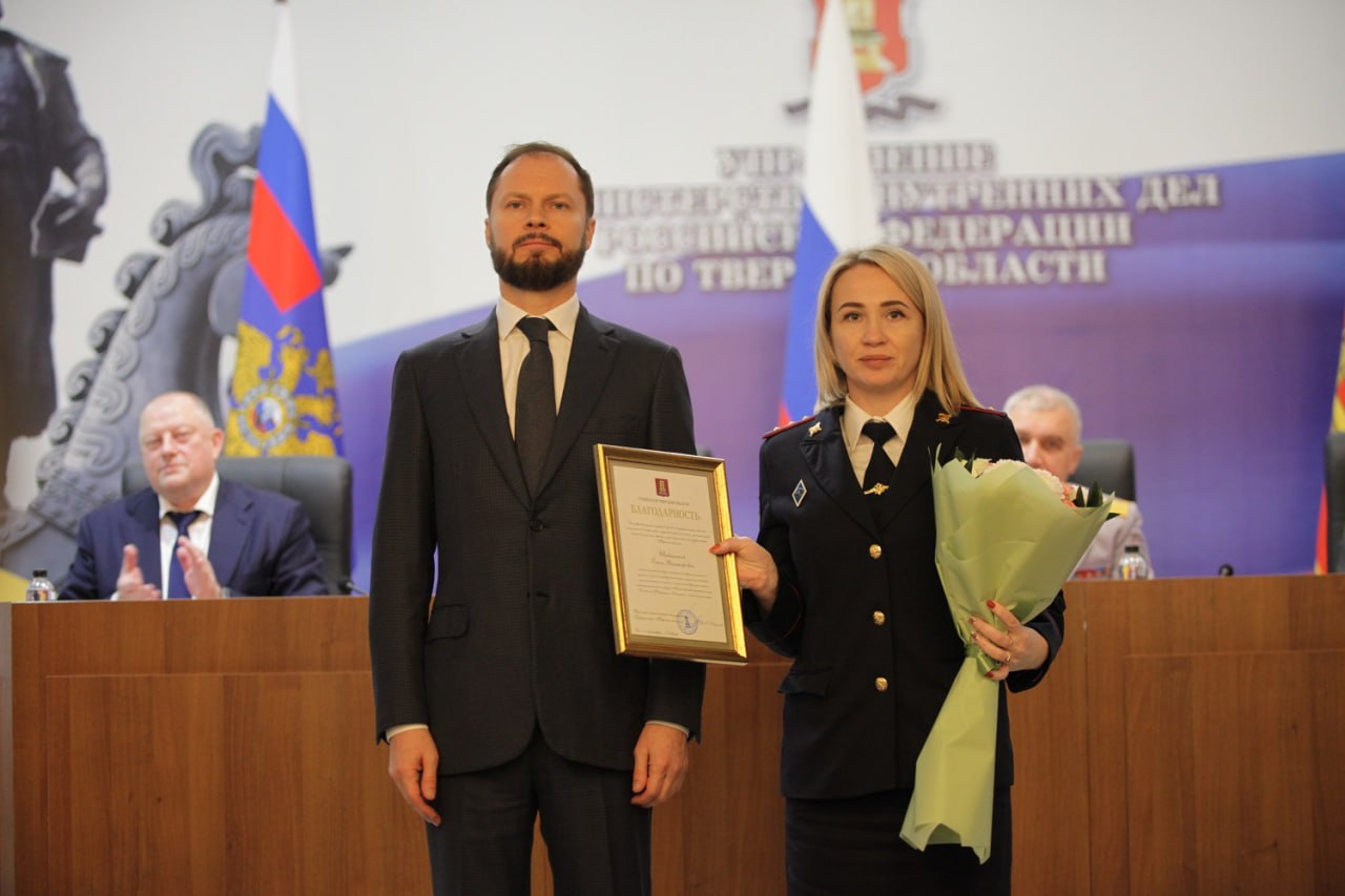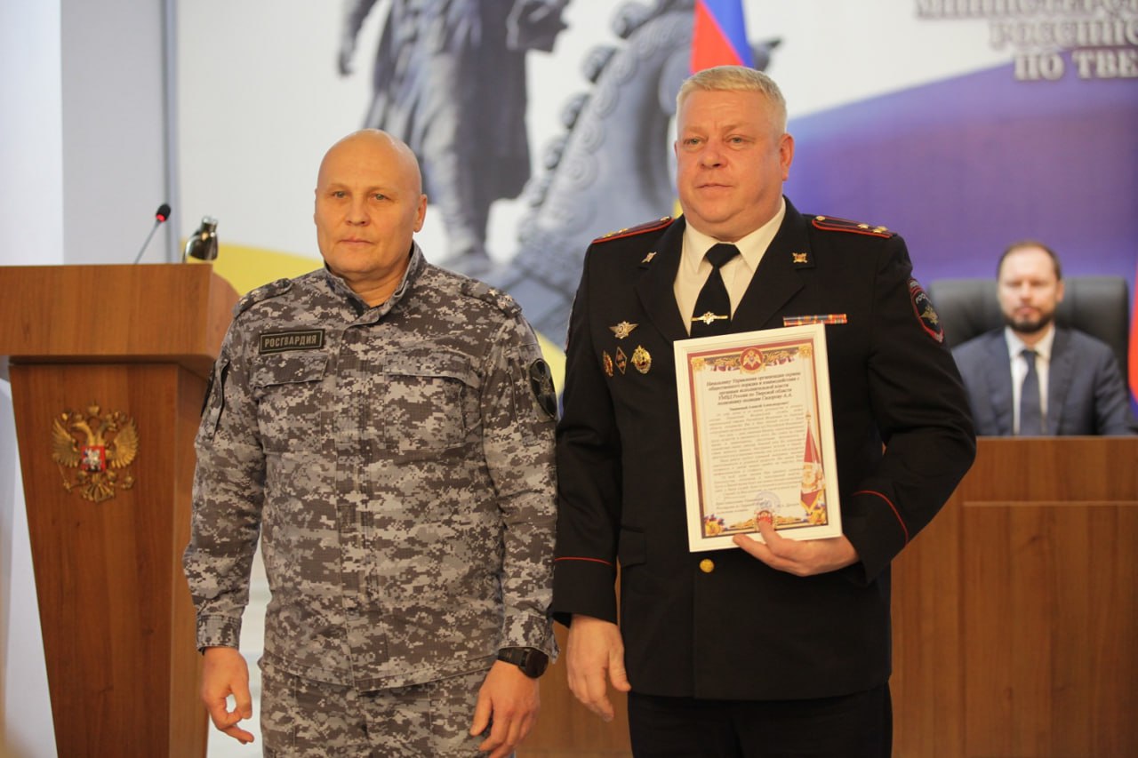 Награды и благодарности лучшим правоохранителям Верхневолжья вручал временно исполняющий обязанности Губернатора Тверской области Виталий Королев, Председатель Законодательного собрания Тверской области Сергей Голубев, Депутат Государственной Думы Федерального Собрания Российской Федерации Сергей Веремеенко, Главный Федеральный инспектор по Тверской области Сергей Свитин, врио начальника регионального управления Росгвардии Максим Дроздов.