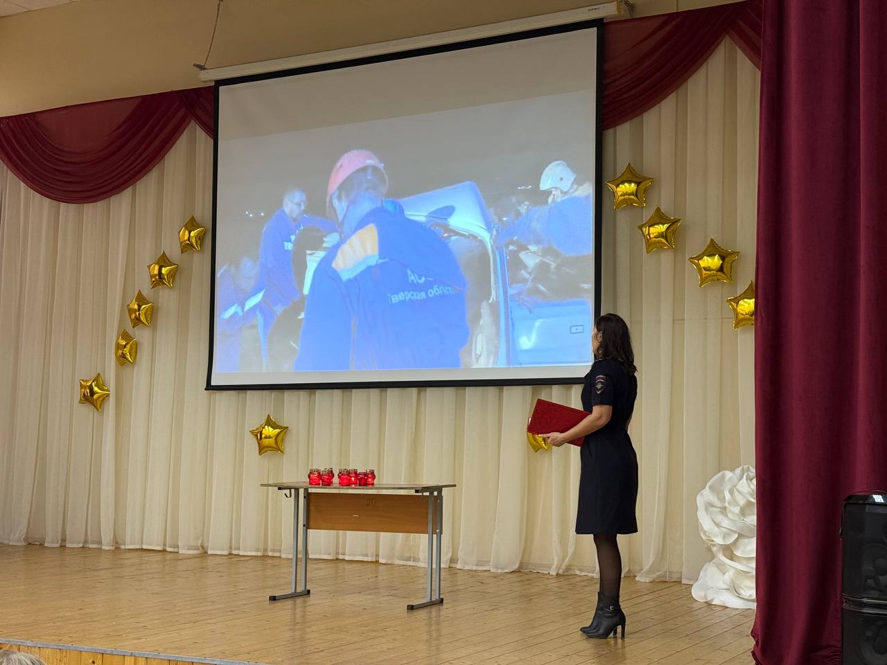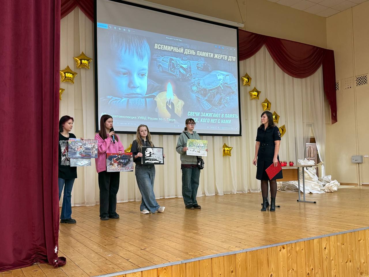 14 ноября 2025 года в преддверии Всемирного дня памяти жертв ДТП, сотрудники Госавтоинспекции и студенты Тверского полиграфического колледжа провели мероприятие для учащихся средней школы № 4. У этого дня есть особое значение — он служит напоминанием о том, как важно соблюдать Правила дорожного движения и быть внимательным на проезжей части, ведь каждого кто-то ждёт дома, ведь человеческая жизнь - самое ценное, что есть на Земле. Студенты полиграфического колледжа в своих рисунках изобразили, что может произойти, если быть невнимательными и не соблюдать Правила дорожного движения, а также рассказали об основных причинах дорожно-транспортных происшествий и их последствиях. В завершении участники мероприятия почтили память погибших в ДТП минутой молчания.