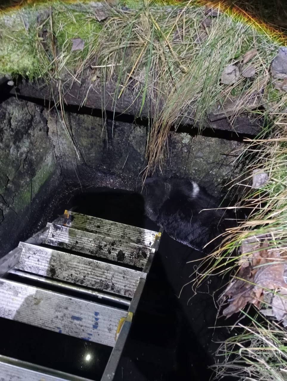 На месте выяснилось, что собака провалилась в канализационную яму и самостоятельно выбраться не могла. Сотрудники пожарно-спасательной части с помощью лестницы спустились вниз и успешно подняли животное на поверхность.