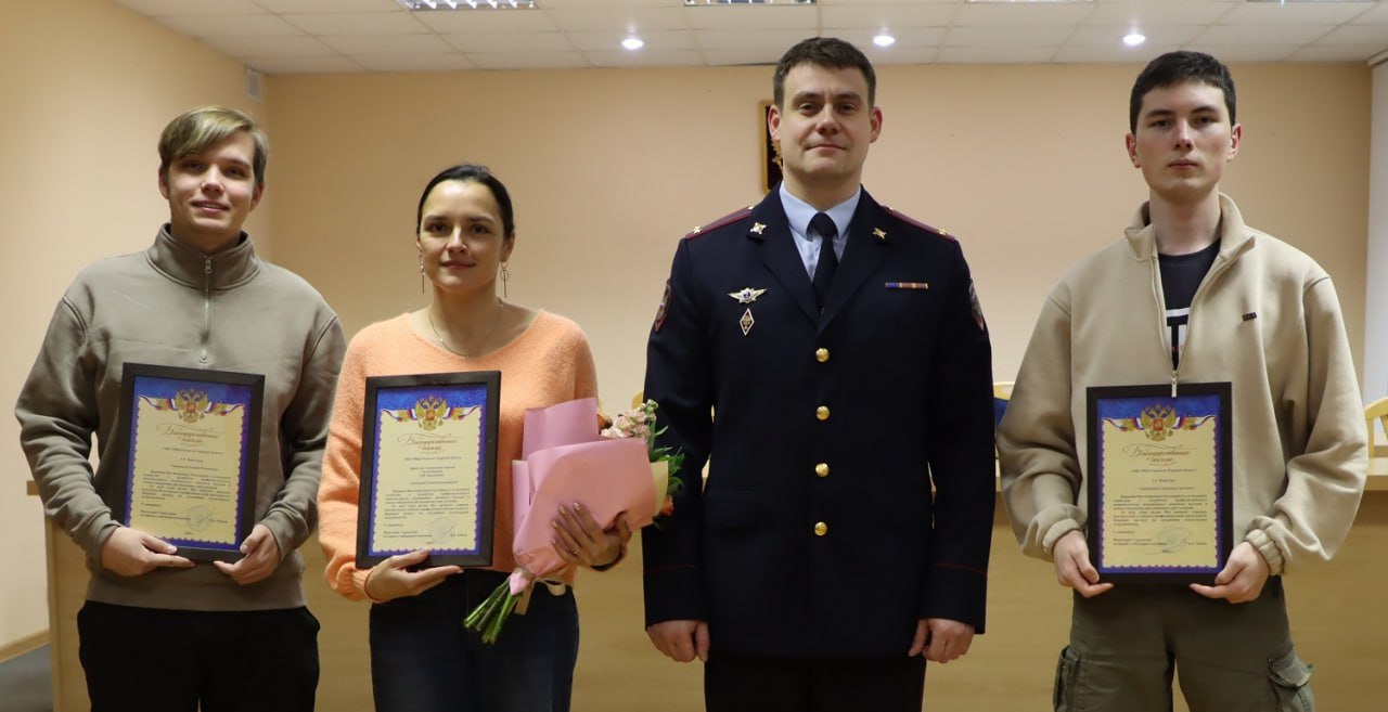 Актёра Александра Кожухова, оператора и режиссёра Андрея Завистяева, а также их художественного руководителя Елену Чернятину полицейские отметили благодарственными письмами.
