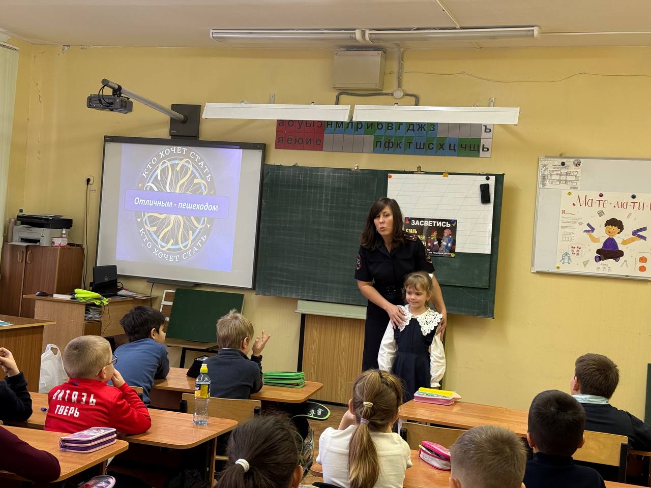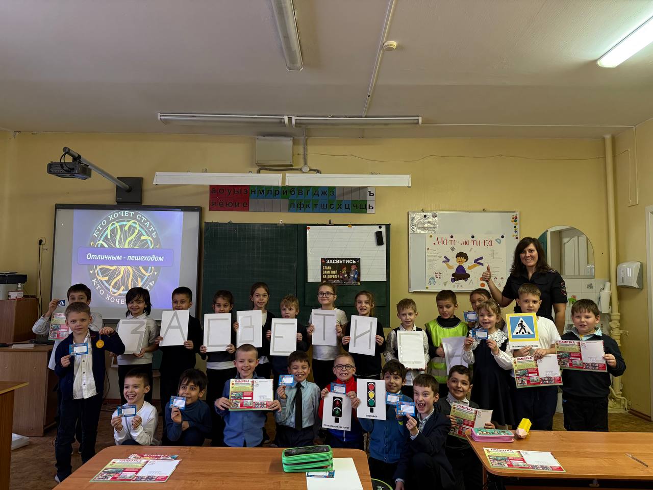 Первоклассники из средней школы №18 города Твери поучаствовали в игре по Правилам дорожного движения «Кто хочет стать «Отличным пешеходом»