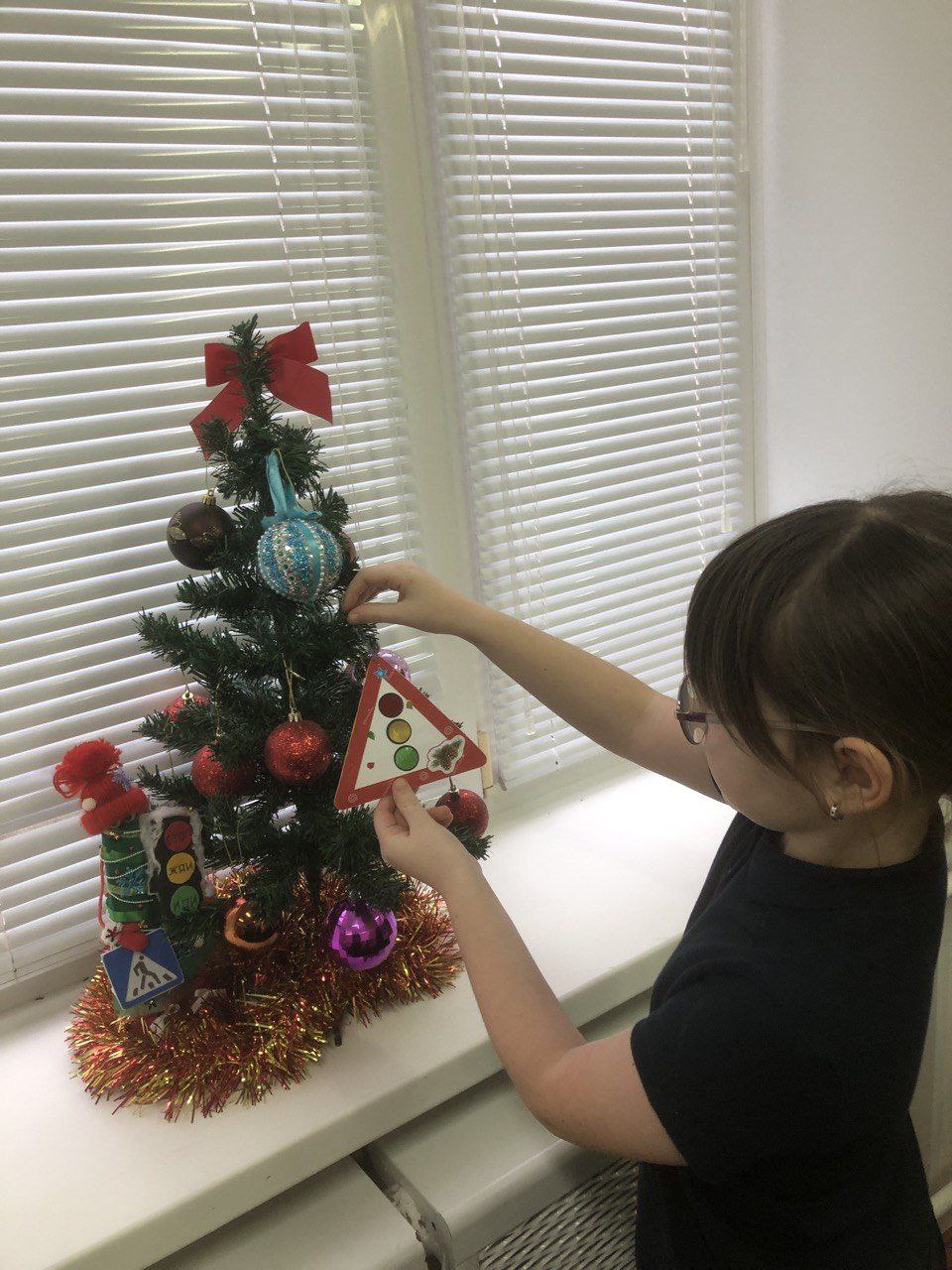 Украшенная ёлочка служат напоминанием для детей о необходимости соблюдать Правила дорожного движения. Перед зимними каникулами ученики средней школы № 33 города Твери украсили школьную ёлочку светофорами, дорожными знаками и другими игрушками с символикой Правил дорожного движения.