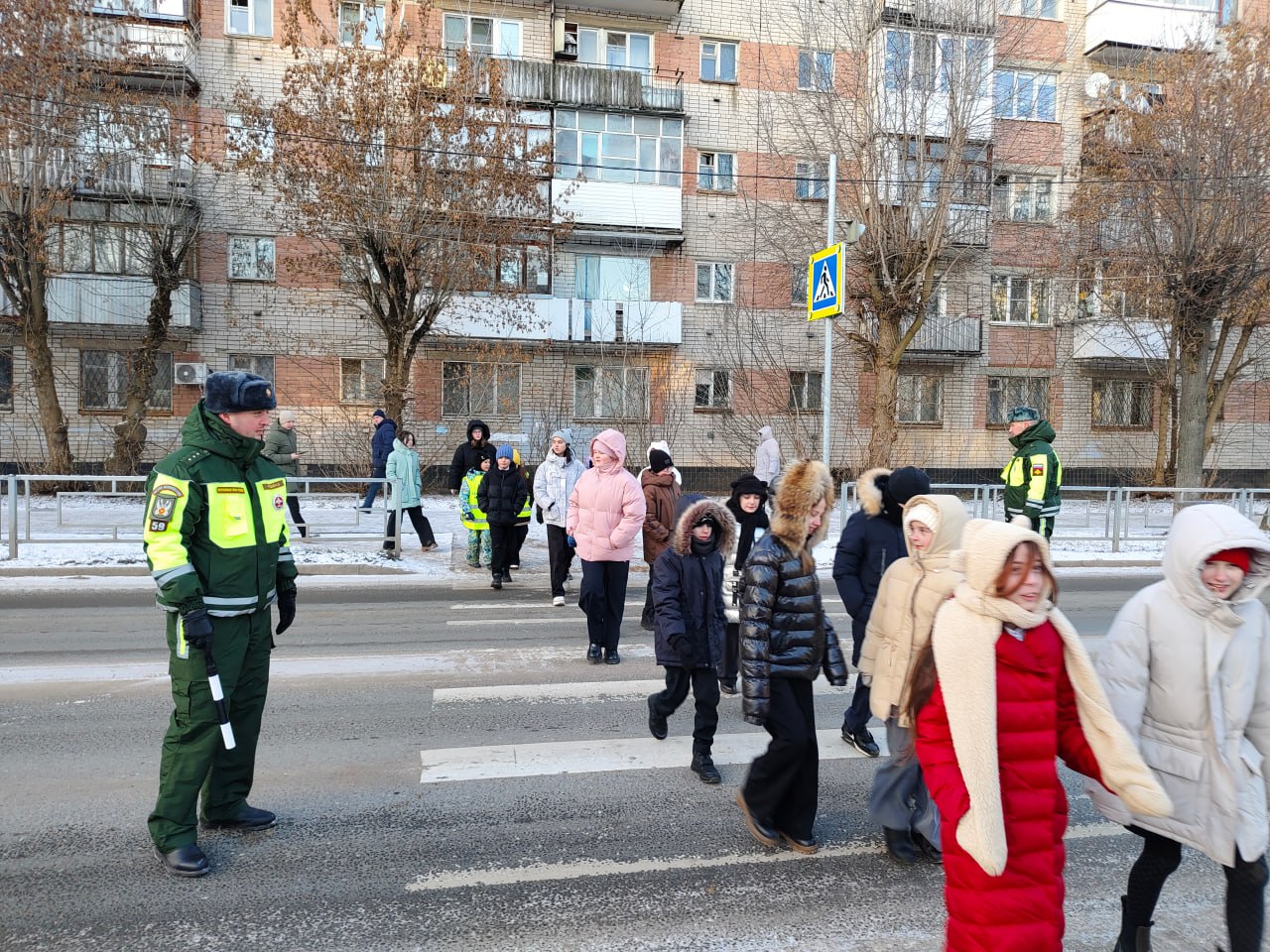 23 декабря в рамках мероприятия «Безопасные каникулы» сотрудники Госавтоинспекции совместно с сотрудниками ДПС 59 военной автомобильной инспекции провели для учащихся средней школы № 53 профилактическое мероприятие «Безопасный маршрут». Главной целью акции стало обучение юных пешеходов распознаванию и обходу опасных ситуаций на дороге в условиях зимнего периода.