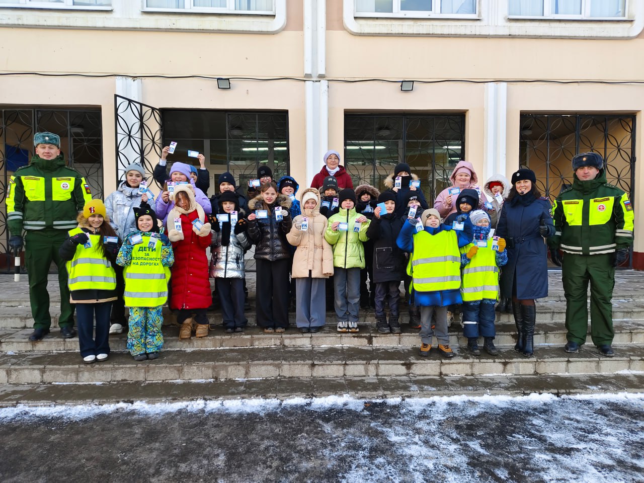 Ребятам напомнили о правилах перехода проезжей части, необходимости использования световозвращающих элементов в тёмное время суток и во время плохой видимости. Каждый школьник получил удостоверение пешехода и полезный подарок к Новому году – световозвращающий брелок.
