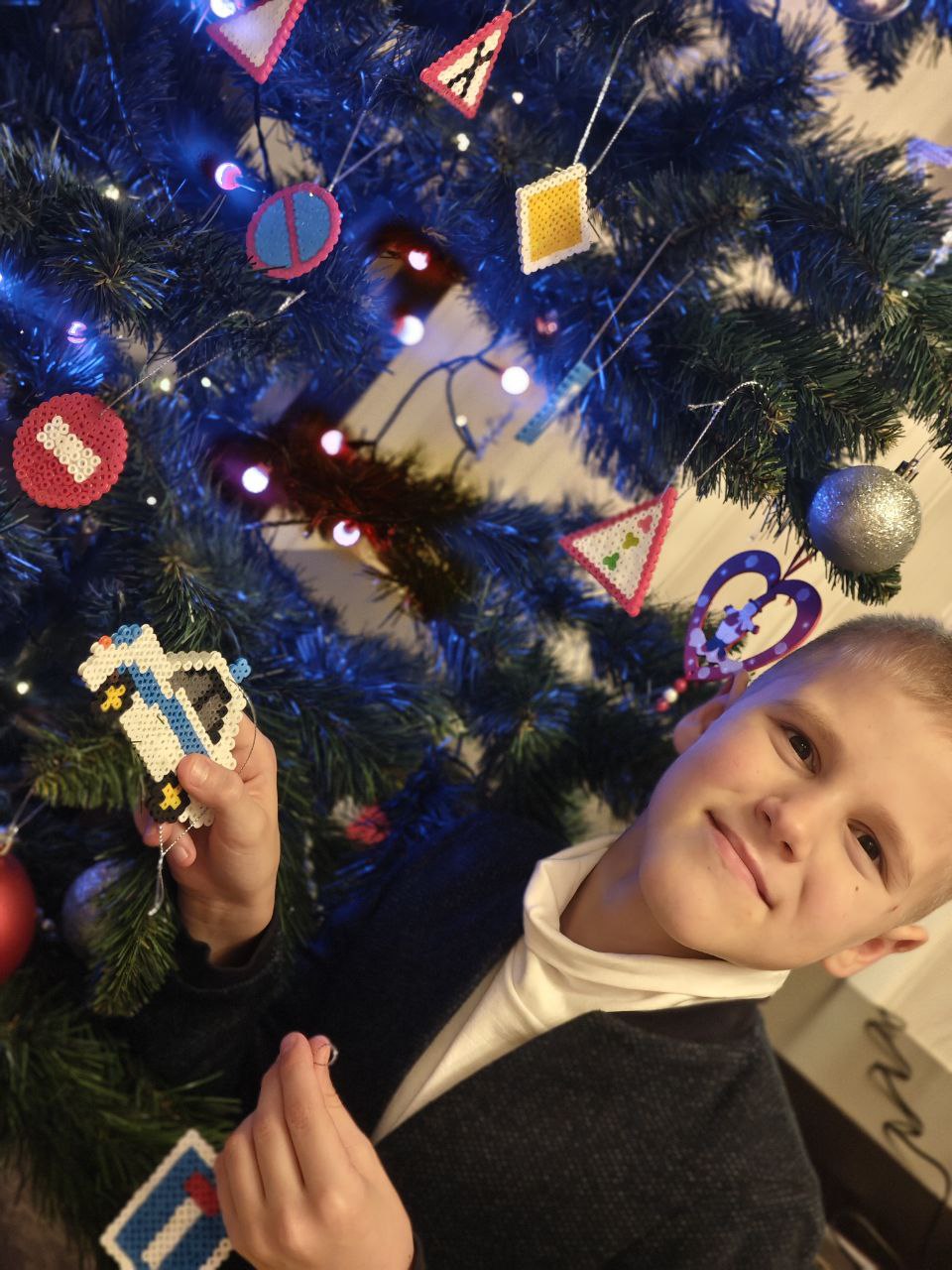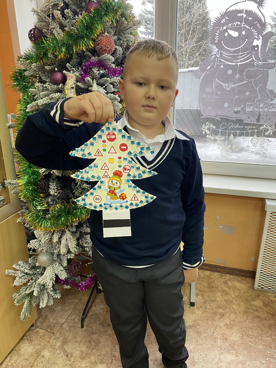 Ребята своими руками сделали необычные поделки и игрушки на елку и повторили Правила дорожного движения