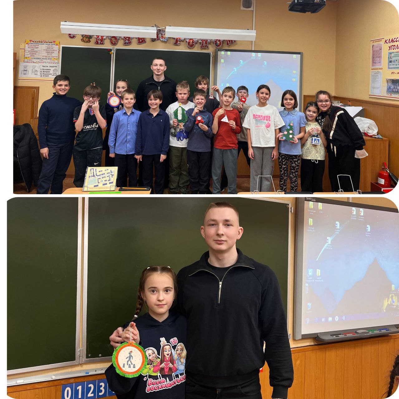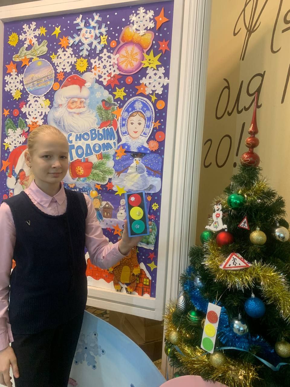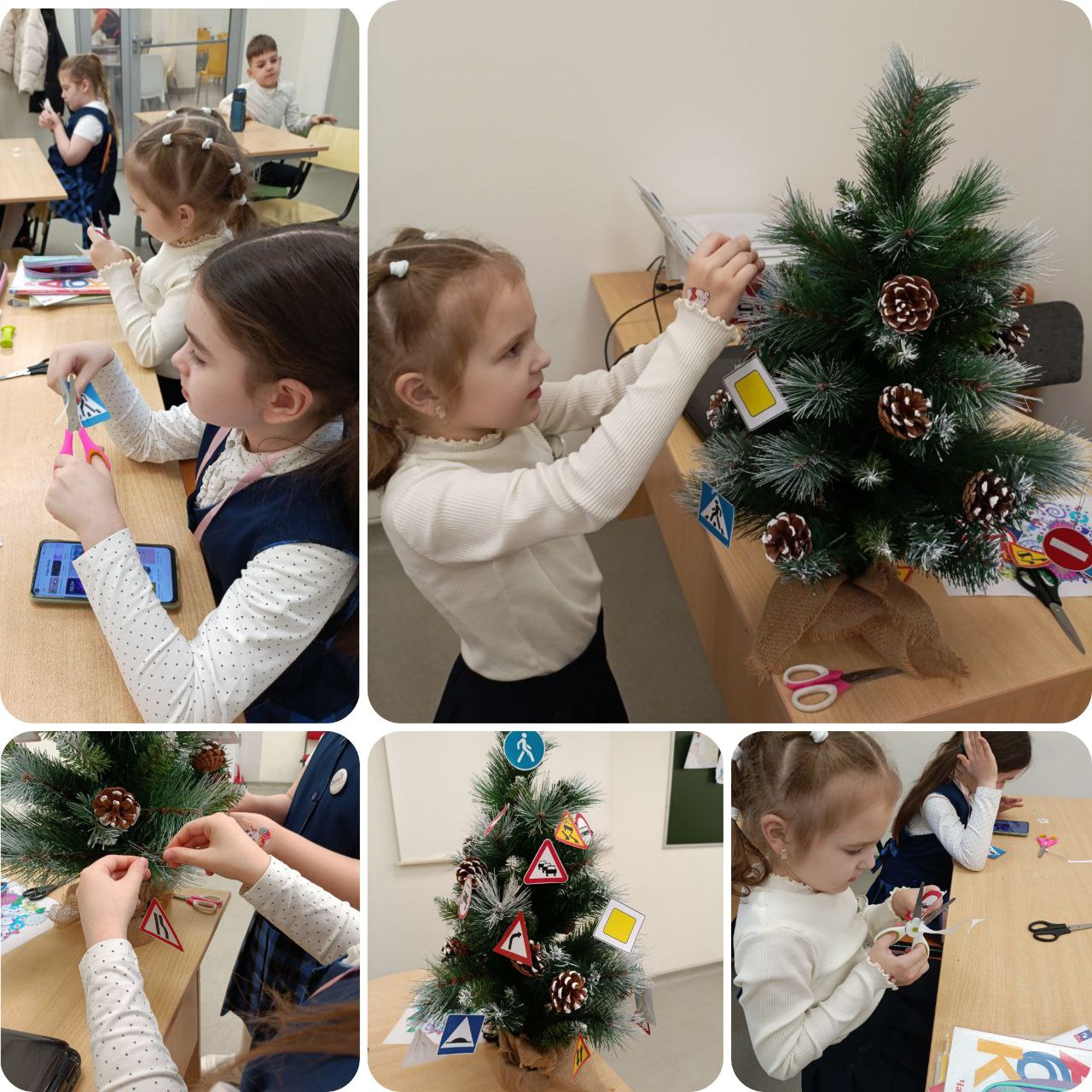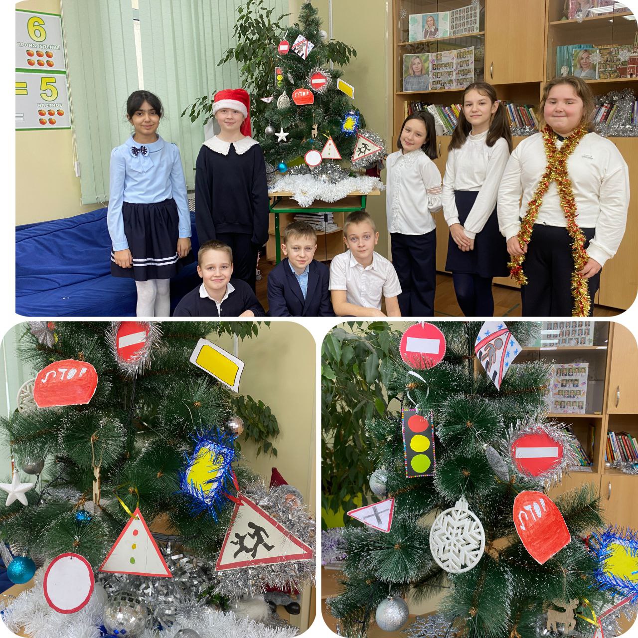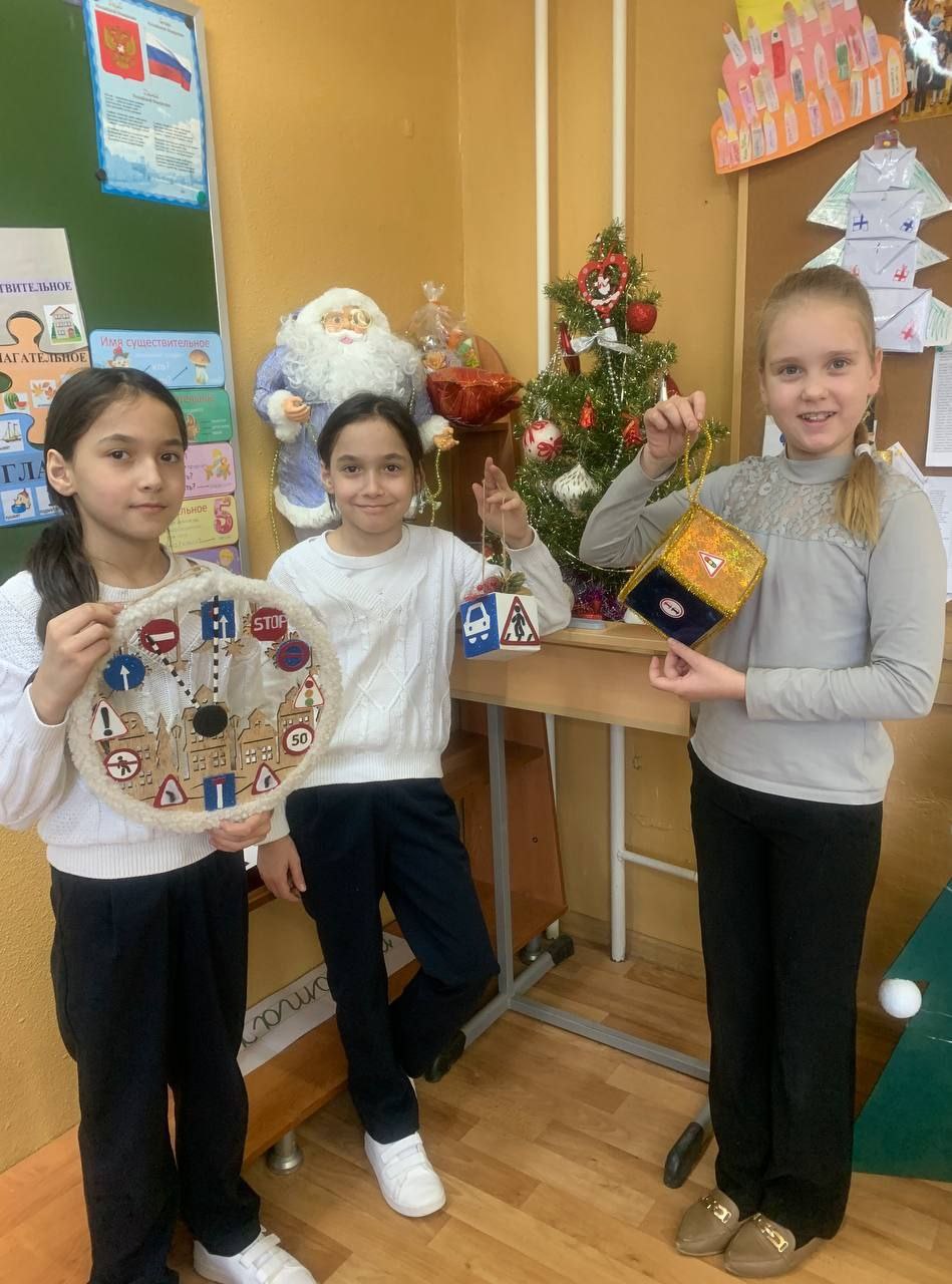 Ребята нарядили самодельными игрушками елочки в классах и заодно повторили Правила дорожного движения.