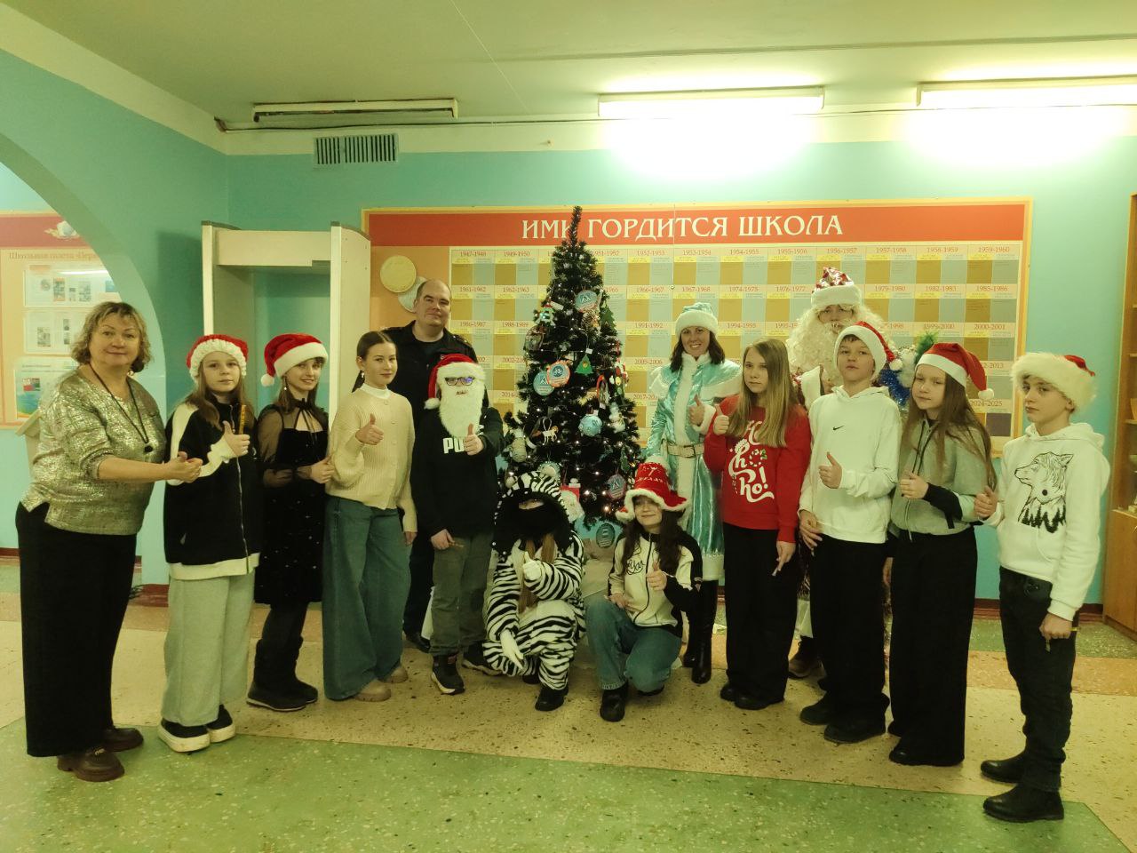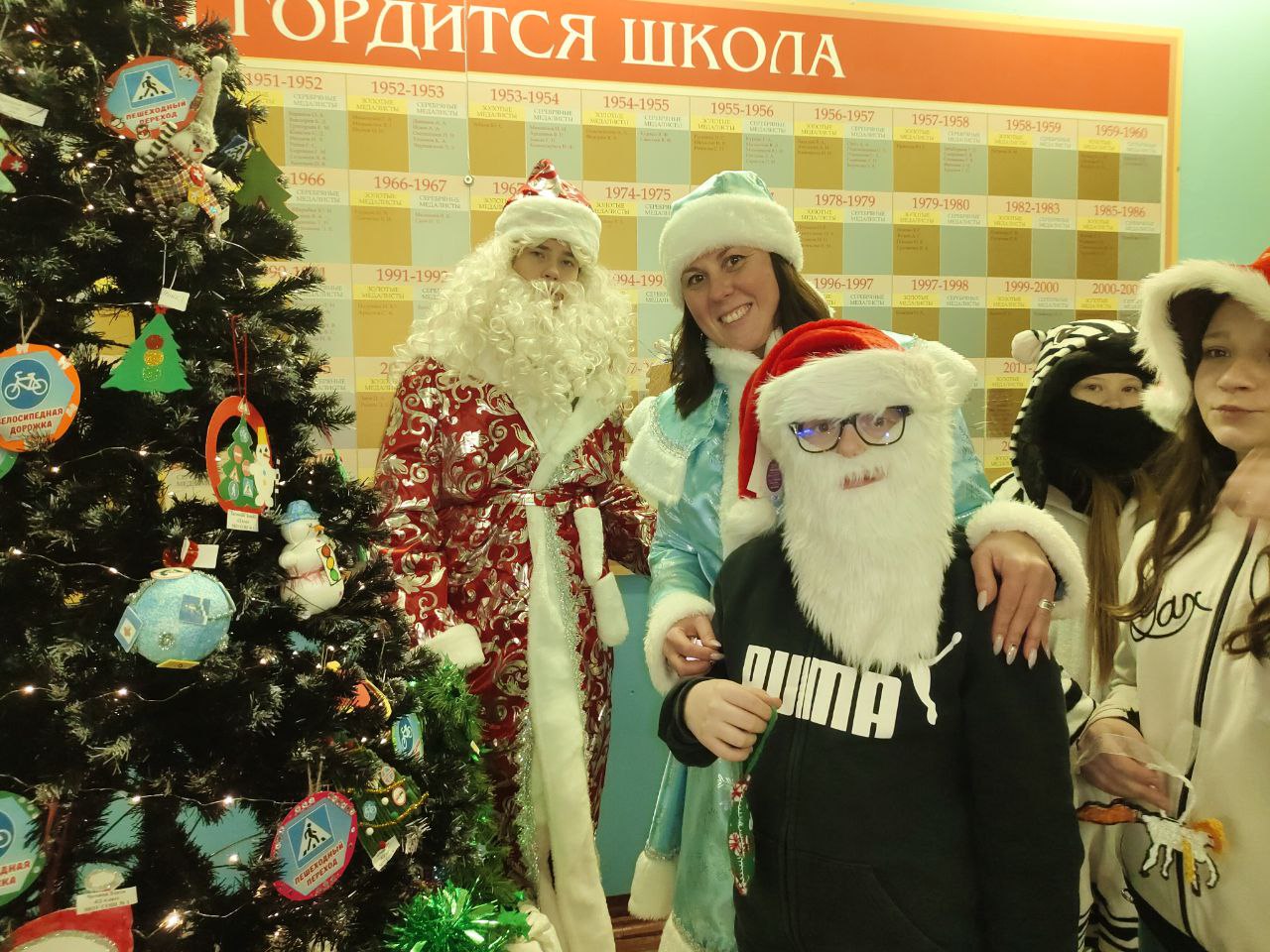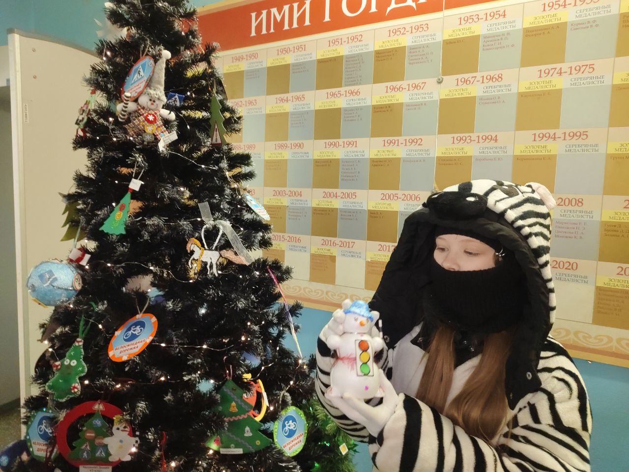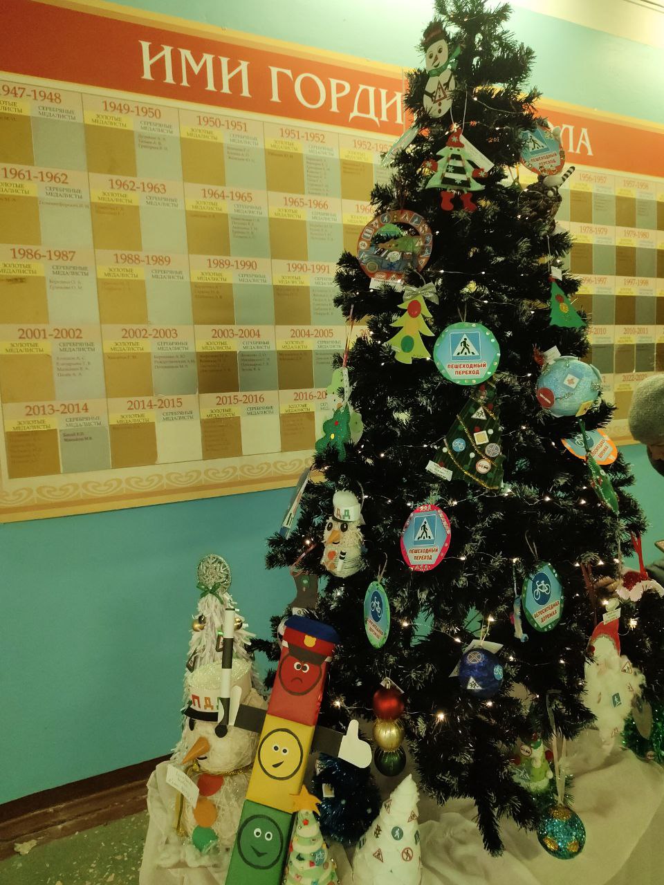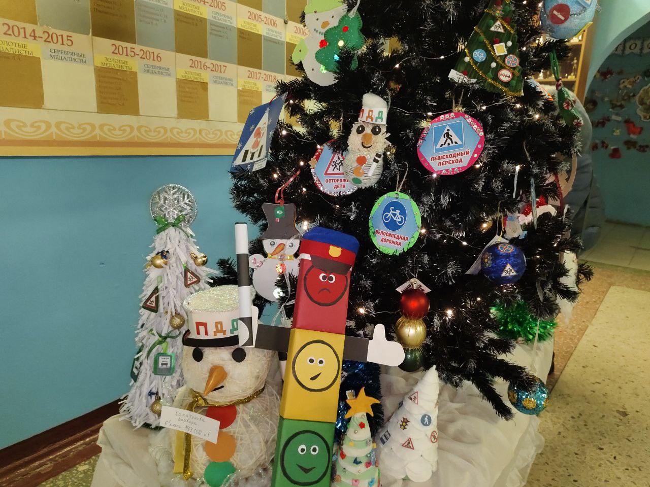 Ребята вместе с полицейскими украсили школьную ёлочку игрушками из дорожных знаков