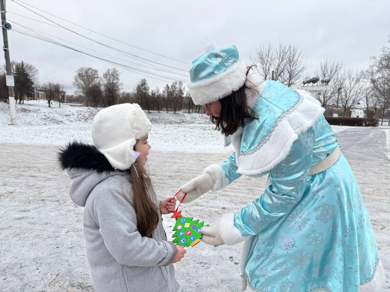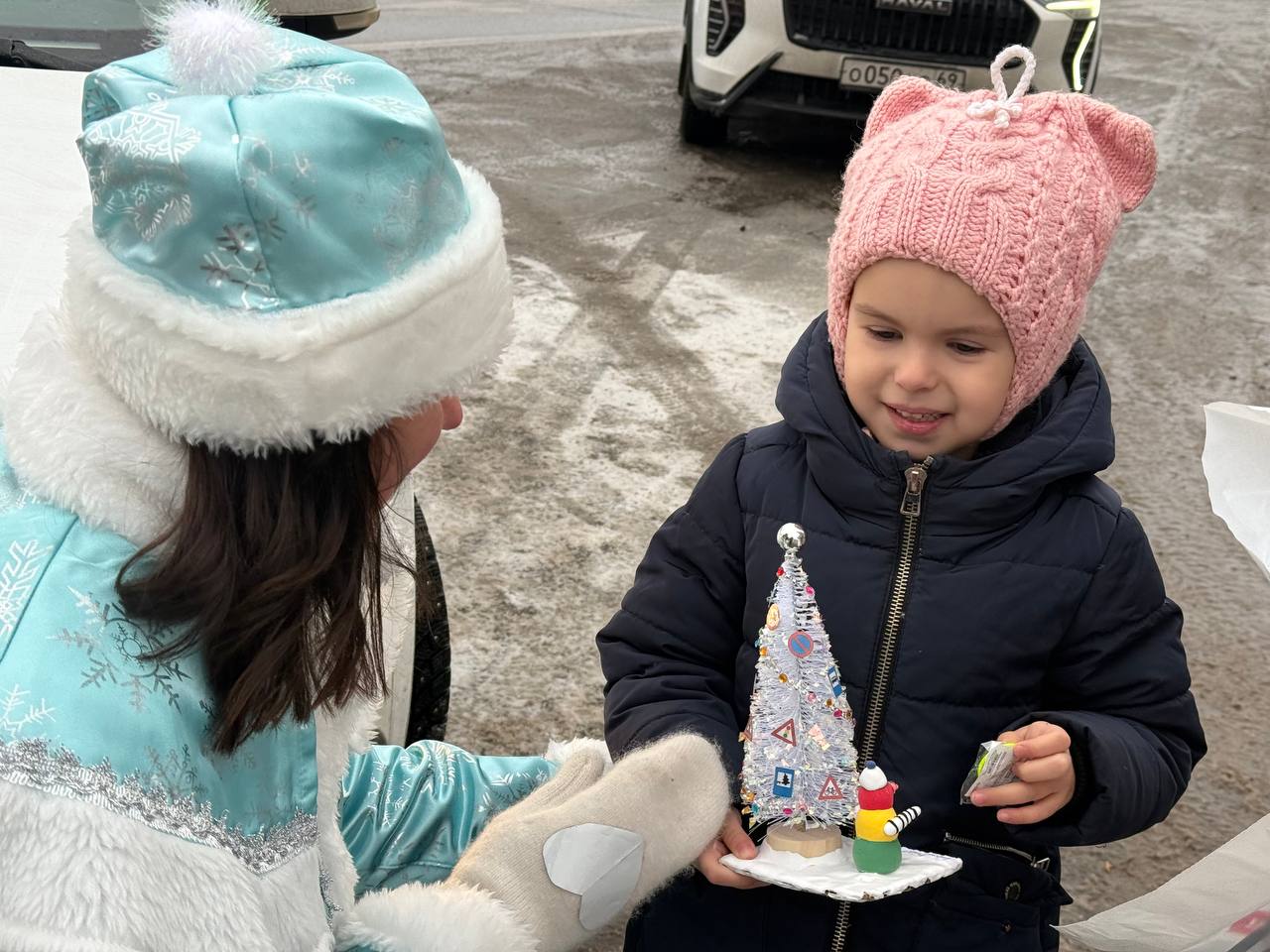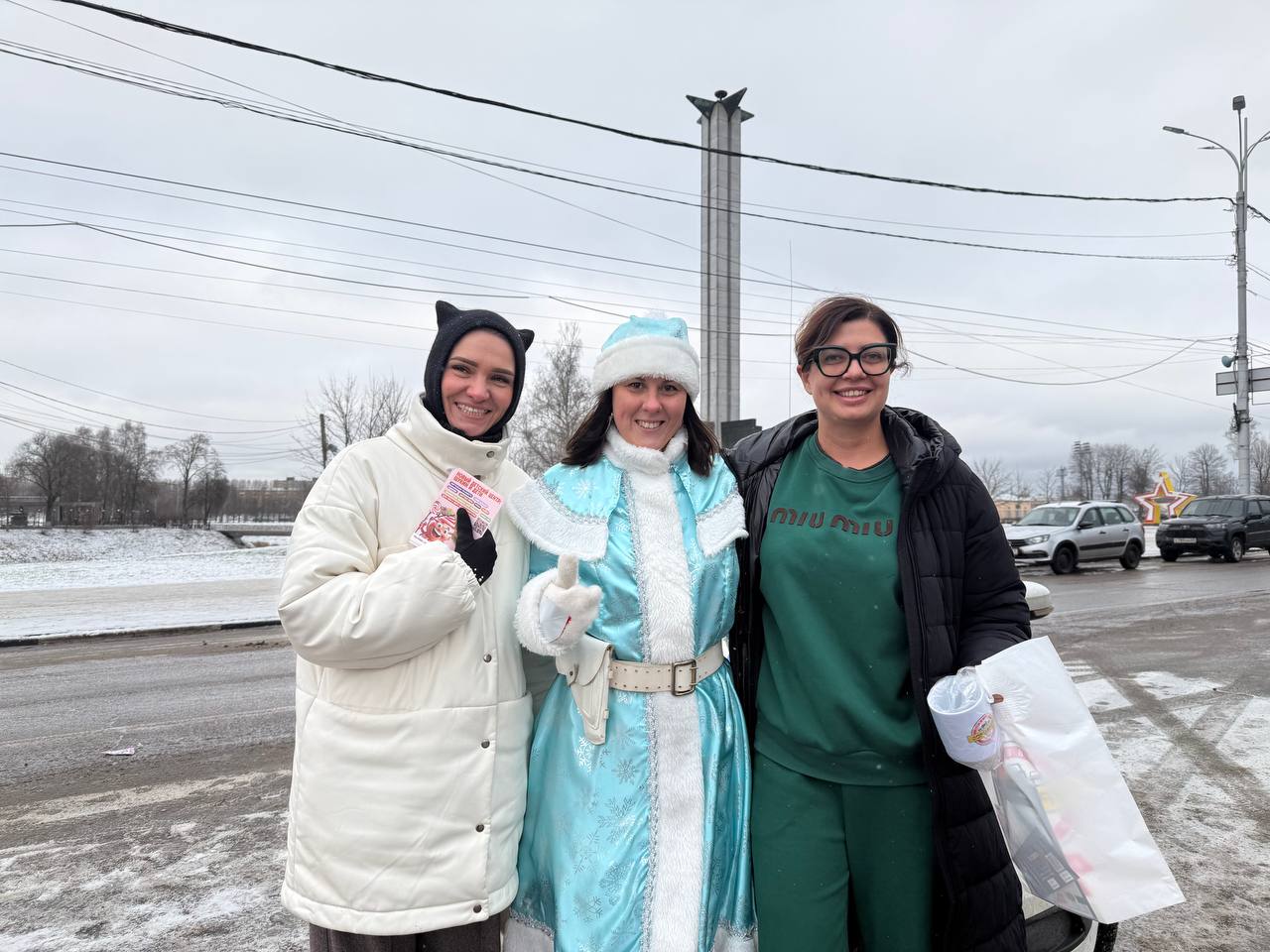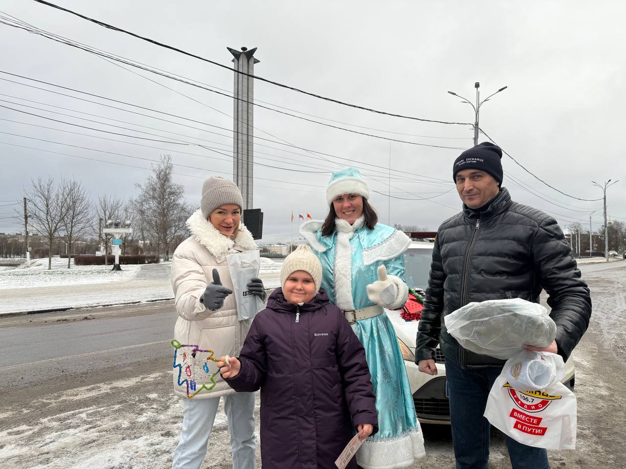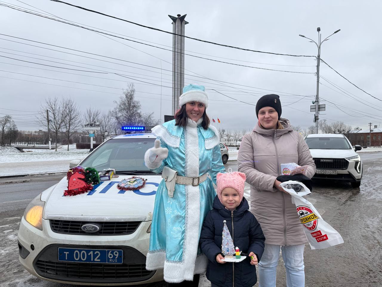 Автоинспектор и Полицейская Снегурочка совместно с командой Дорожного радио -Тверь на улицах нашего города поздравили водителей с наступающим Новым 2026 годом