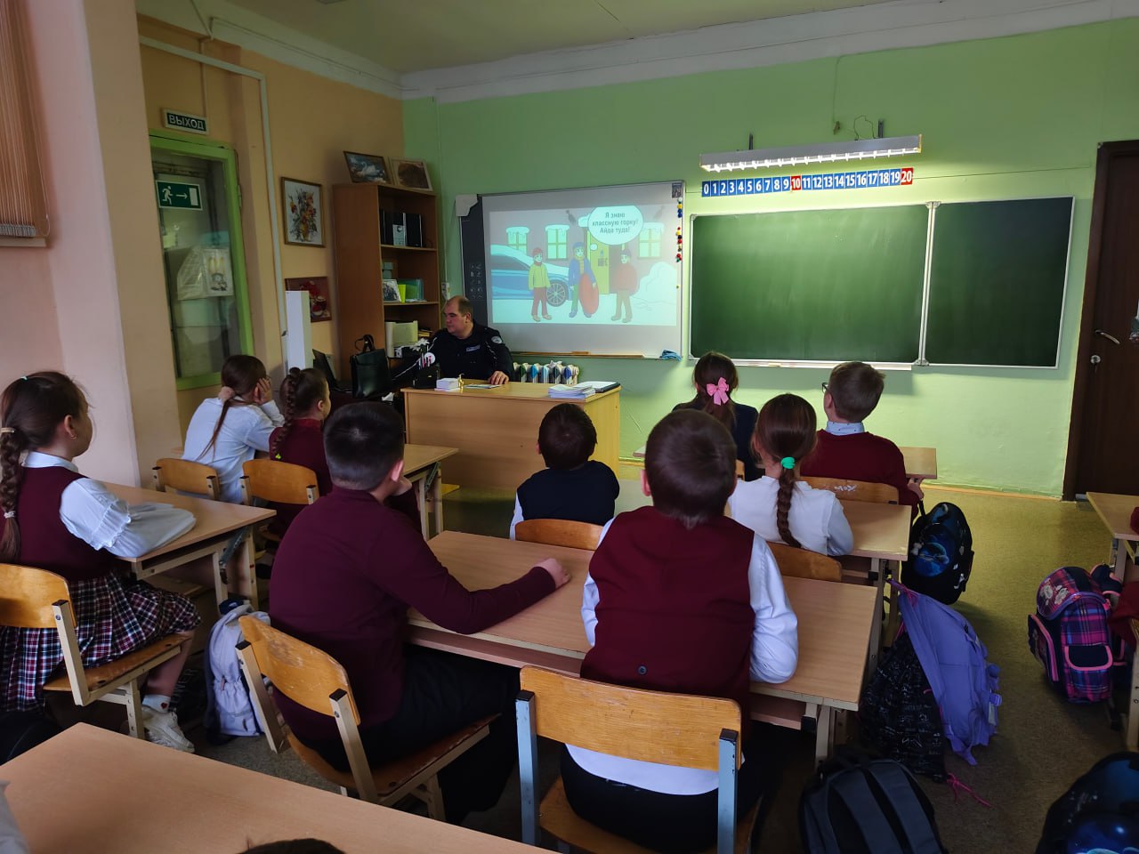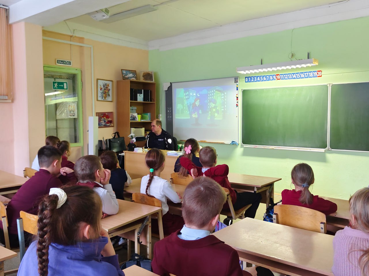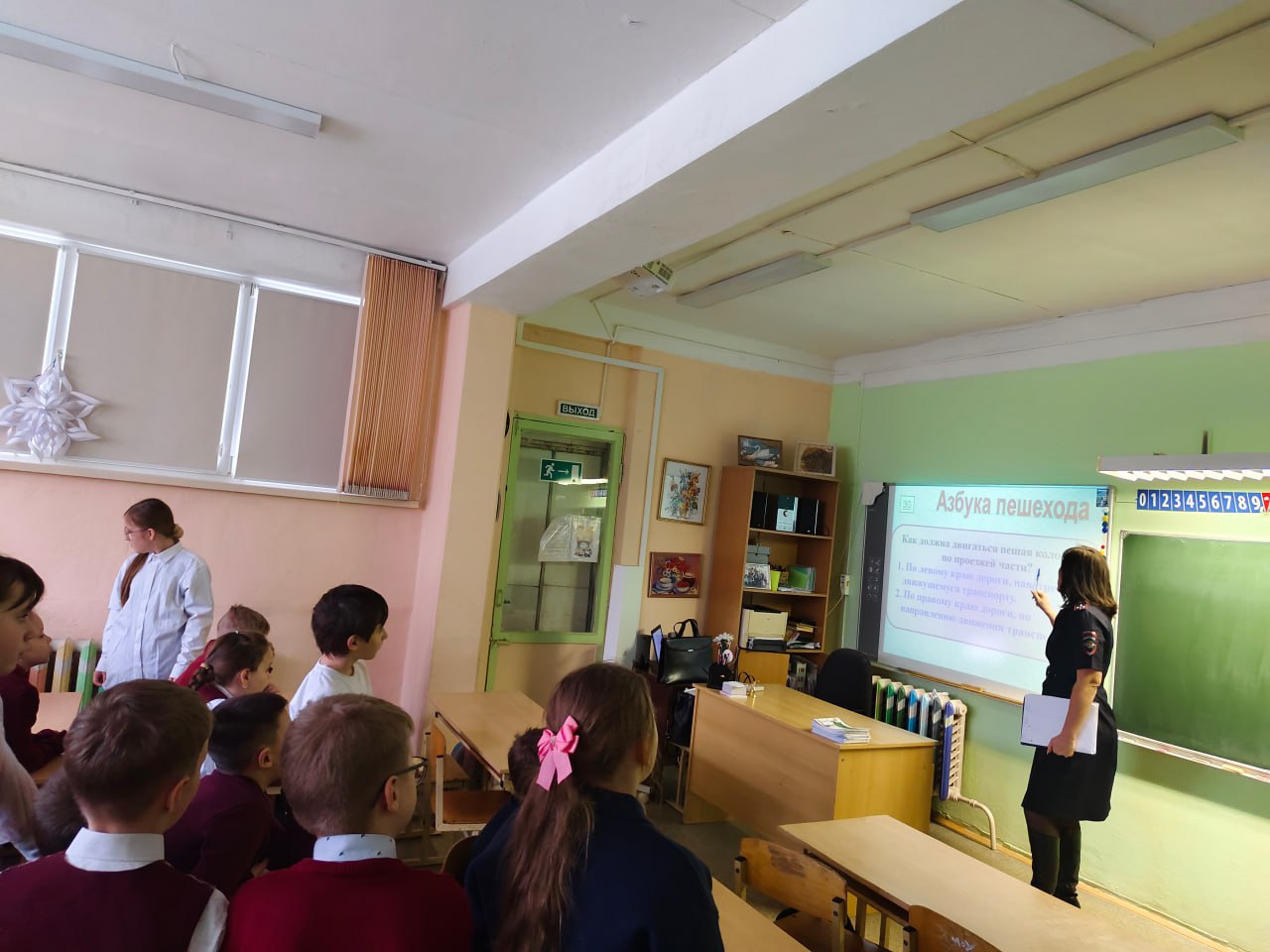 Далее сотрудники Госавтоинспекции провели игру по Правилам дорожного движения «Правила движения – достойны уважения!». В ходе игры с использованием видео экрана ученики повторили дорожные знаки, как работает светофор и для чего он нужен, в каком месте безопасней переходить дорогу. Все задания были направлены на развитие внимания, памяти и закрепление знаний Правил дорожного движения. С ребятами повторили правила для юных пешеходов и пассажиров в преддверии зимних каникул.