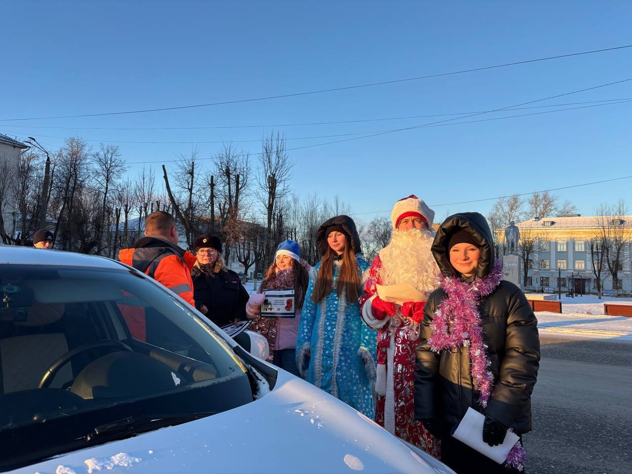 Инспектор по пропаганде безопасности дорожного движения отделения Госавтоинспекции ОМВД России «Бологовский», активисты и член Общественного совета, а по совместительству Дед Мороз, в рамках акции «Пристегните себя и самое дорогое!» провели разъяснительные беседы с водителями.