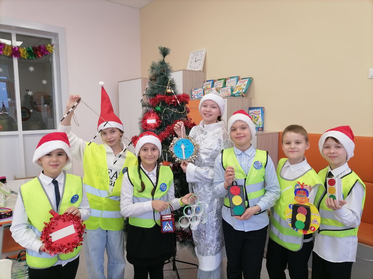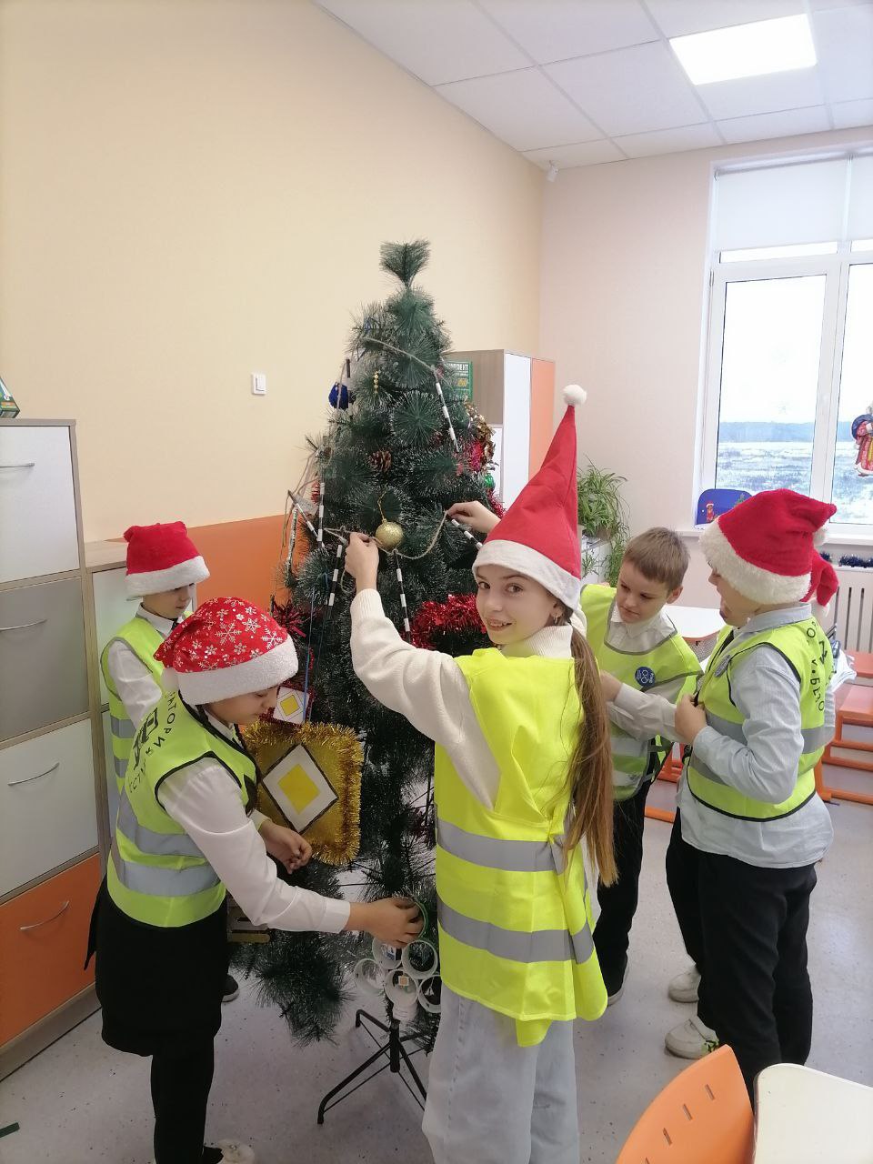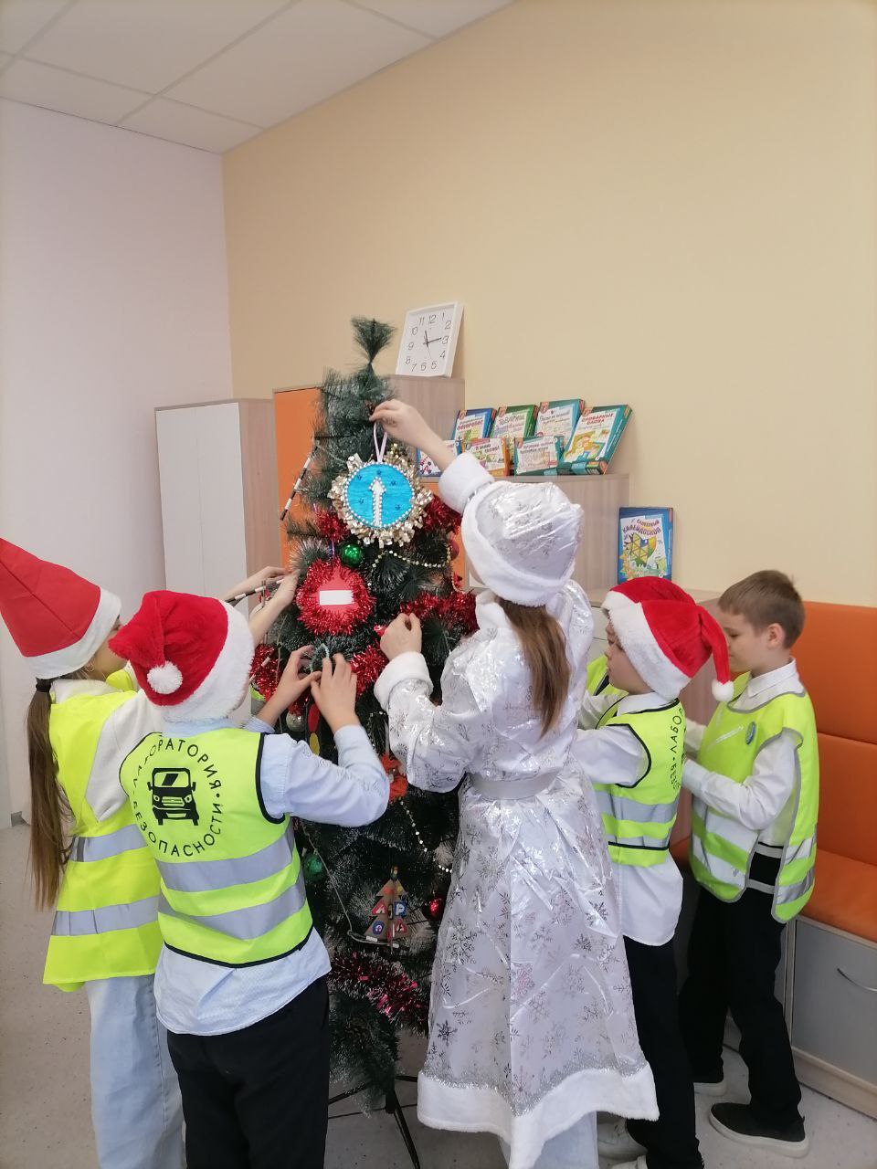 Ученики Центра образования №56 создали новогоднее настроение в школе и украсили ёлочку в стиле ПДД