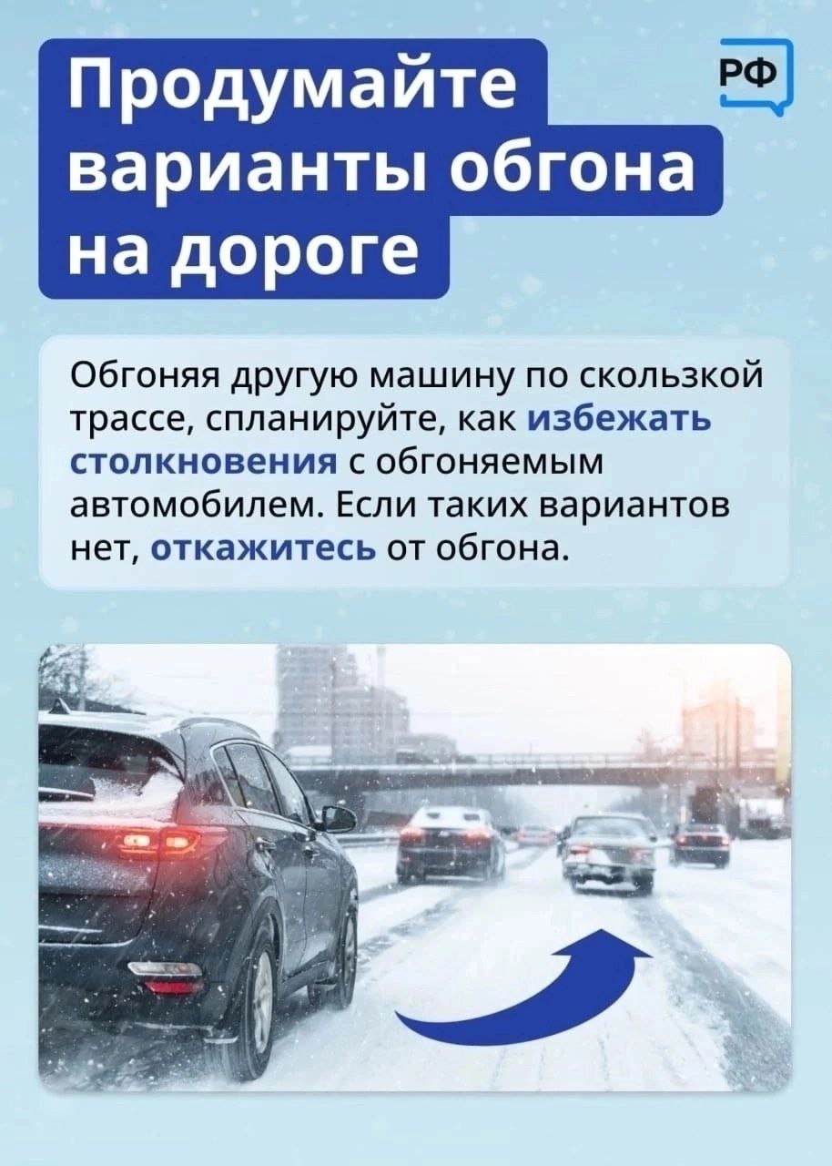 В зимнее время дорога требует особого внимания всех участников движения, именно строгое выполнение требований Правил дорожного движения является залогом безопасной поездки. Во время снегопада существенно снижается видимость, а на заснеженной или обледенелой дороге — значительно увеличивается тормозной путь автомобиля. Именно поэтому крайне важно соблюдать установленные ограничения скорости, поддерживать увеличенную дистанцию и боковой интервал до других транспортных средств.