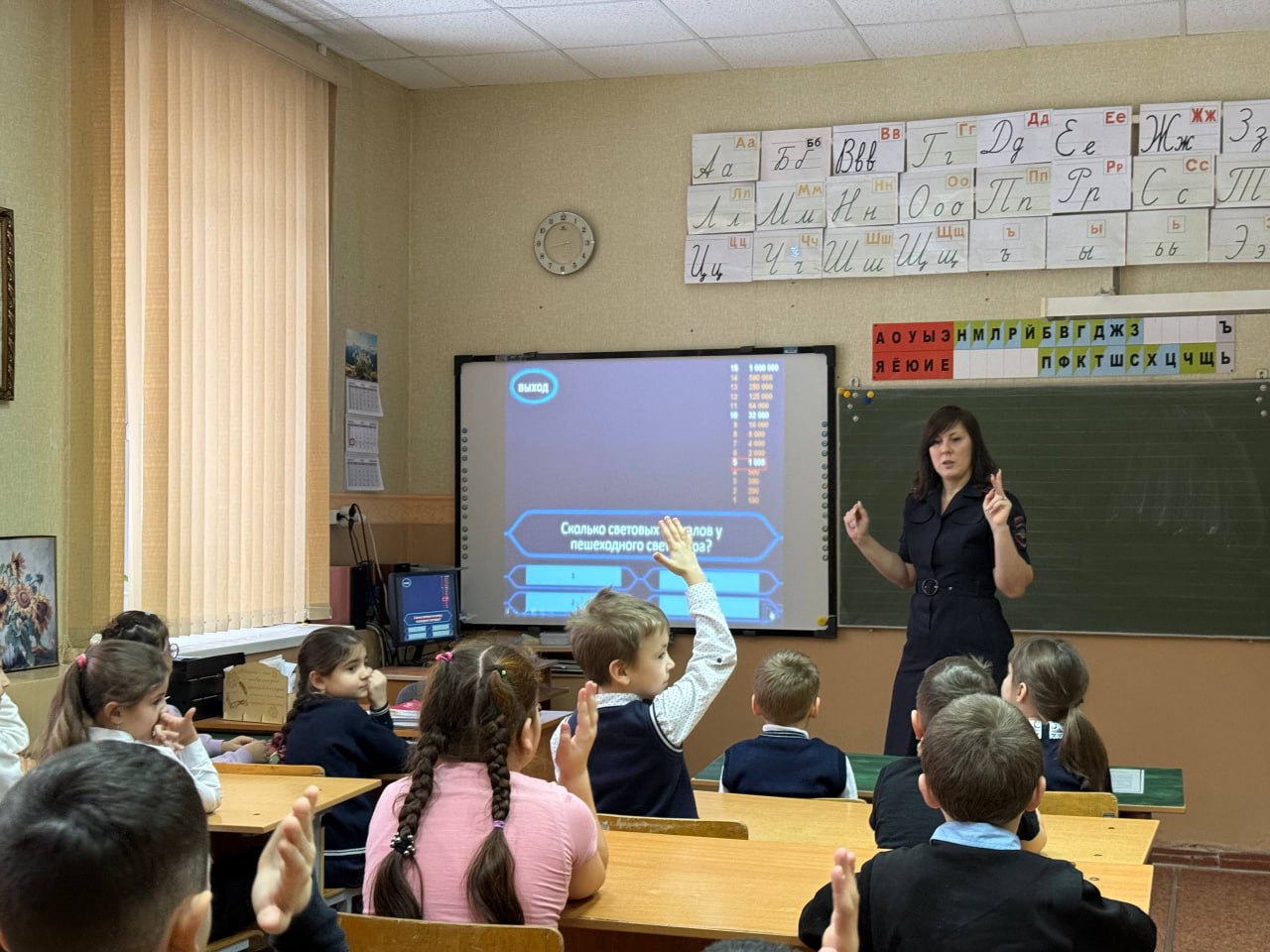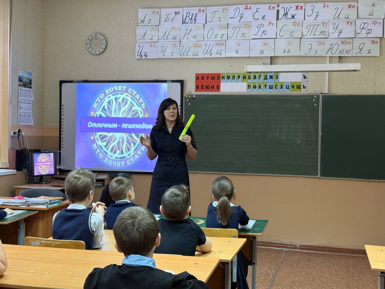 Первоклассники из средней школы №28 города Твери поучаствовали в игре по Правилам дорожного движения «Кто хочет стать «Отличным пешеходом»