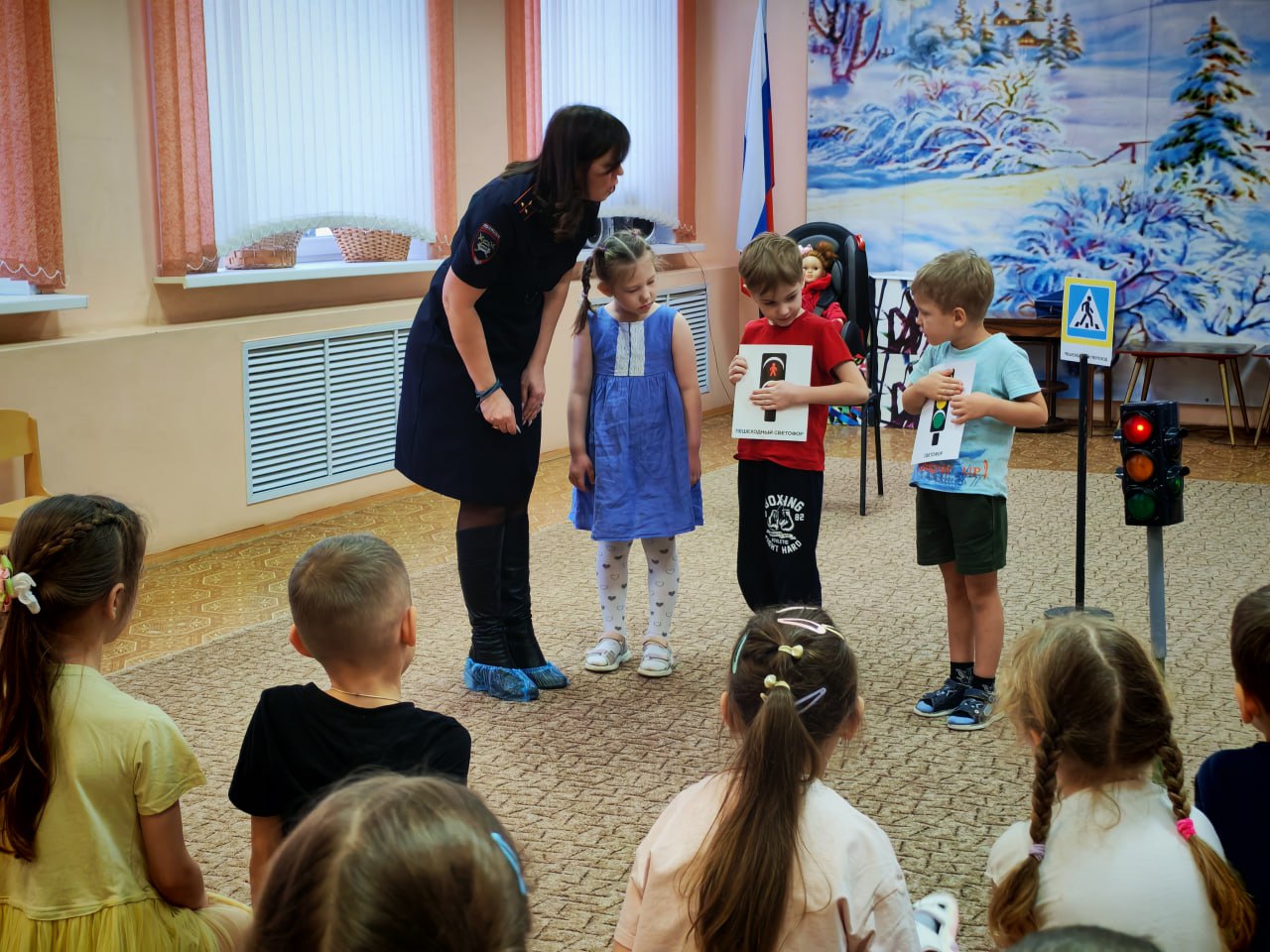 Сотрудники Госавтоинспекции города Твери заглянули в гости к воспитанникам детского сада № 80, чтобы в игровой форме напомнить о самых важных правилах на дороге