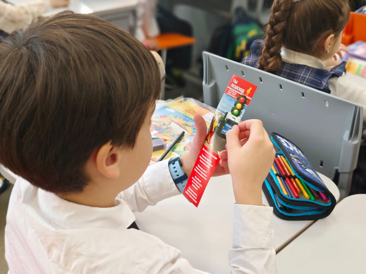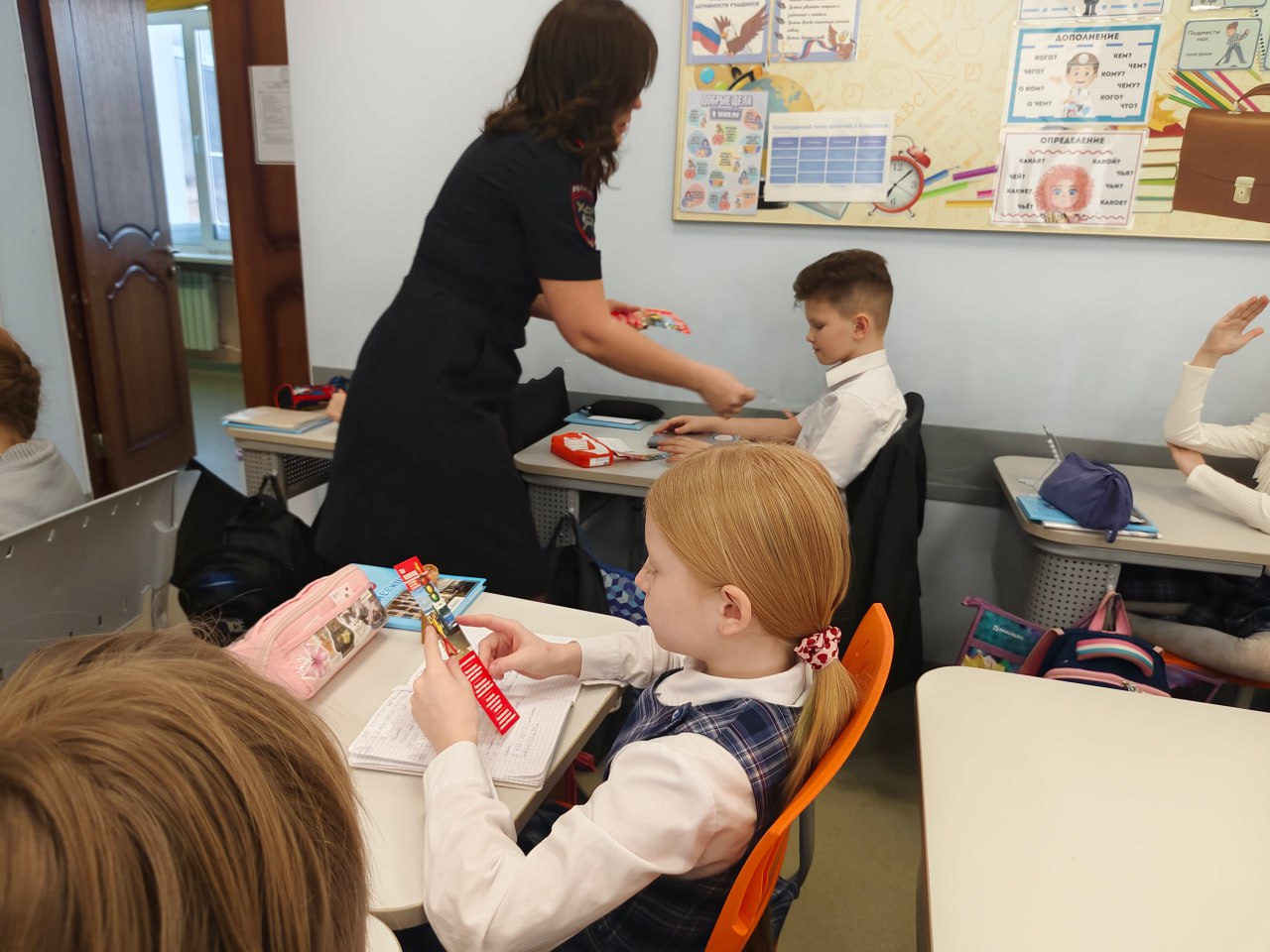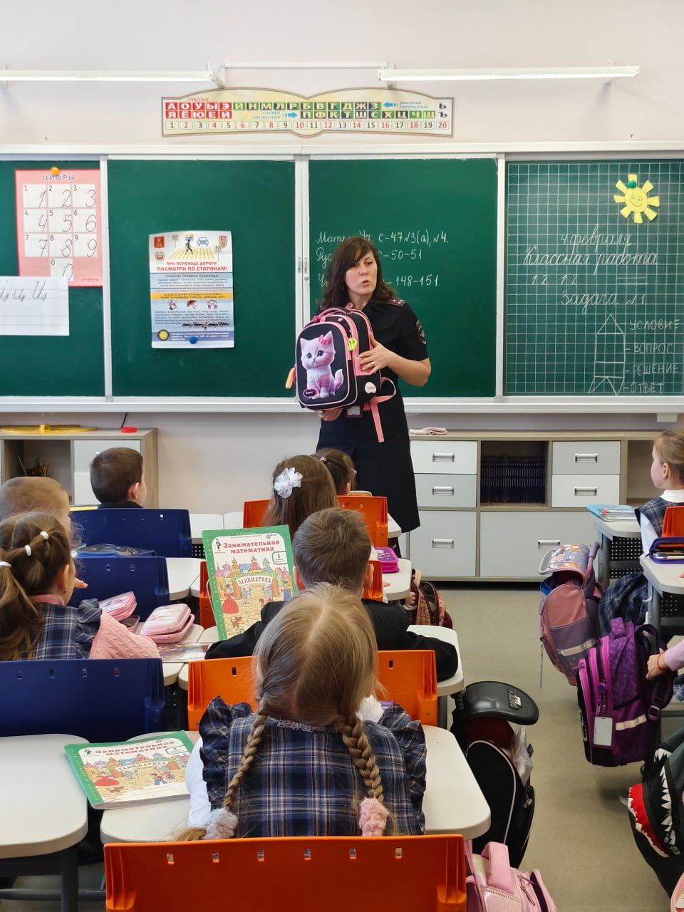 04 февраля 2026 года полицейские провели для учеников начальных классов СОШ № 17 города Твери занятия «Дорожная наука» по Правилам дорожного движения. В ходе встречи школьникам в доступной и наглядной форме рассказали о правилах поведения на дороге в зимний период, о рисках использования гаджетов на проезжей части и о том, почему капюшон может мешать безопасному ориентированию. Особое внимание было уделено необходимости использования световозвращающих элементов для повышения заметности пешеходов в тёмное время суток и в условиях плохой видимости. В завершении мероприятия всем ребятам вручили памятки для пешеходов.