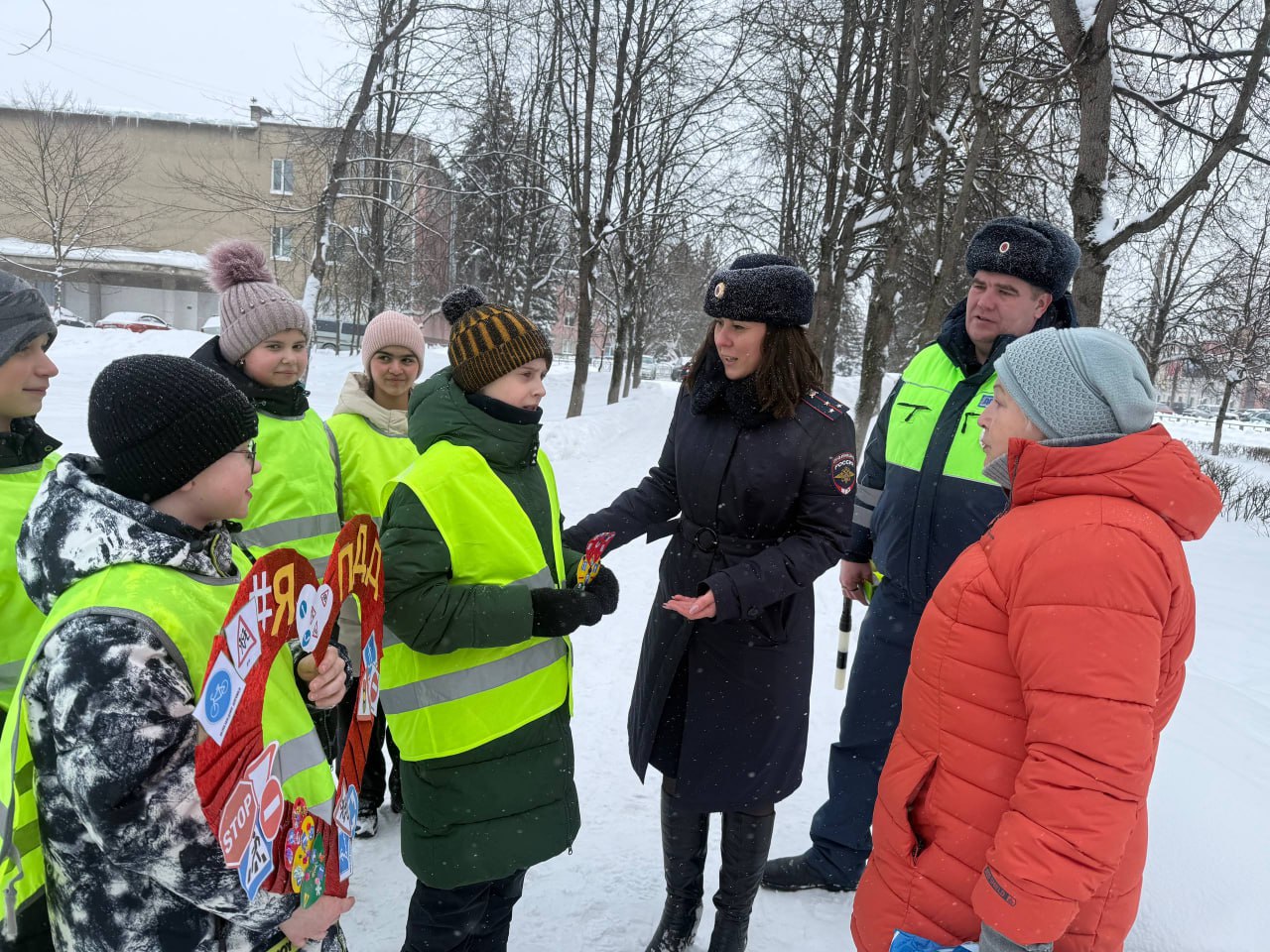 Полицейские совместно с детьми вручали пешеходам «валентинки» и призывали соблюдать Правила дорожного движения