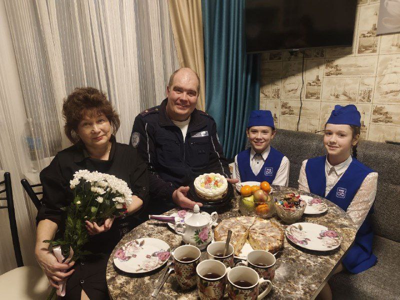 Официальная часть переросла в душевное чаепитие. В теплой домашней обстановке Елена Борисовна поделилась воспоминаниями, а полицейские и ребята рассказали о своих буднях.