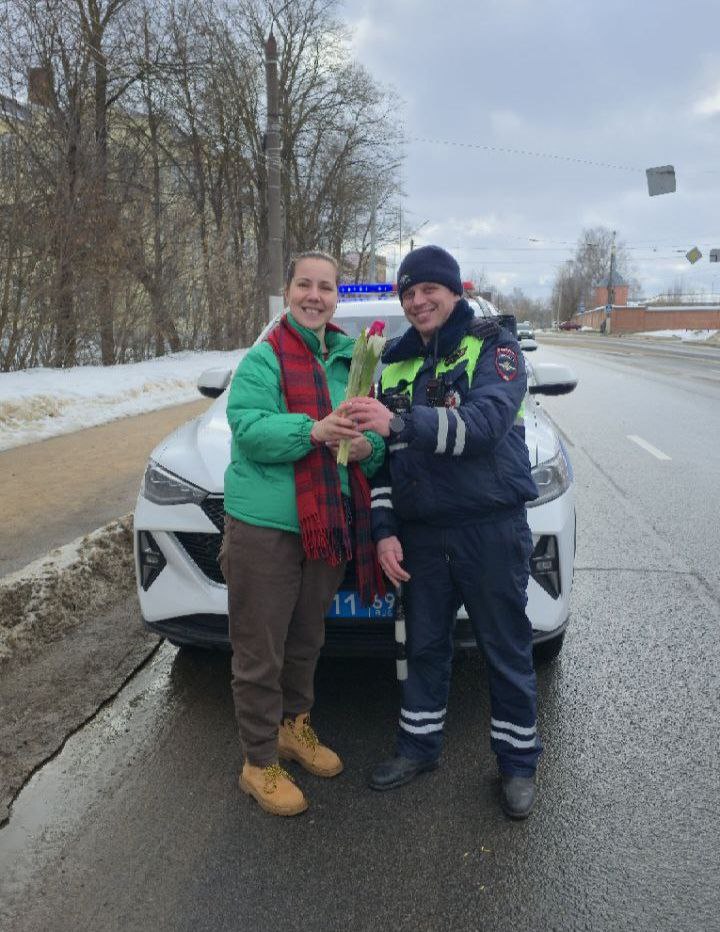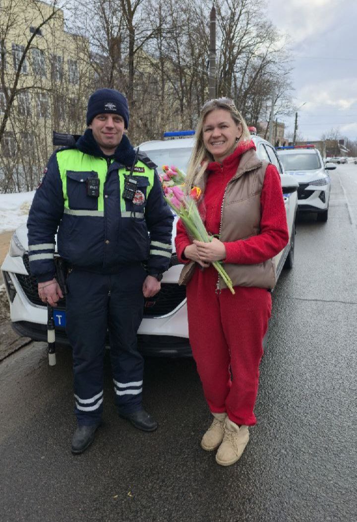 В Твери сотрудники Госавтоинспекции провели праздничную акцию «Цветы для автоледи»
