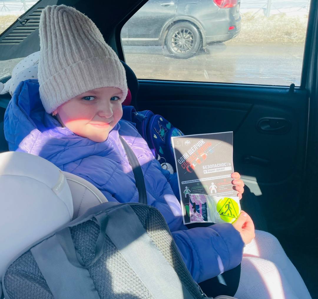 Юным участникам акции вручали световозвращающие значки, которые сделают их заметными для водителей в тёмное время суток.