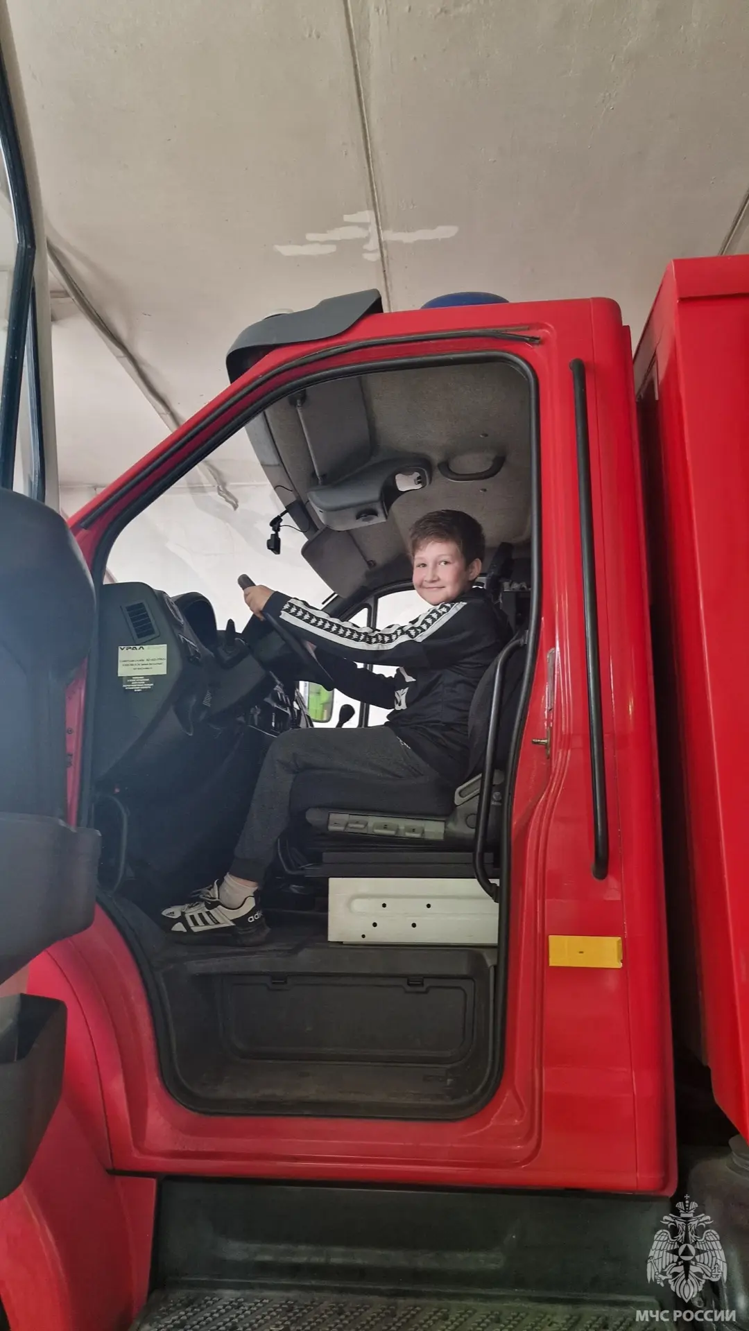 Учащиеся надевали боевую одежду и снаряжения пожарного, пожарную каску, посидели за рулём пожарного автомобиля и в кабине пожарных.