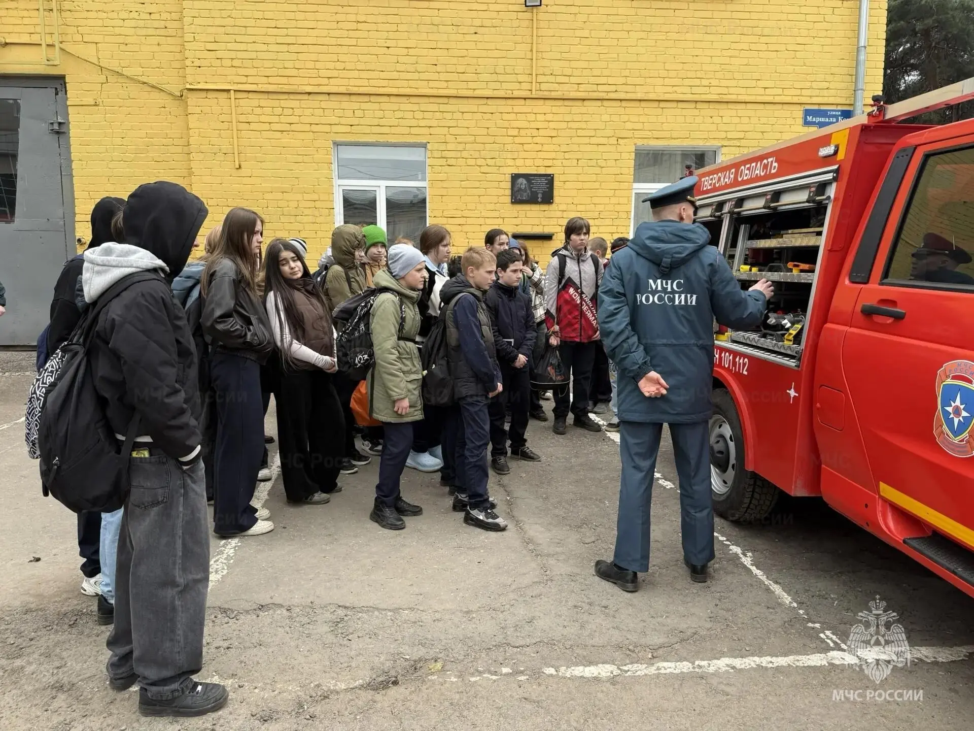 Огнеборцы показали ребятам пожарный автомобиль, аварийно-спасательный инструмент, обмундирование, средства спасения и защиты органов дыхания и зрения, а также гараж, пункт связи , учебный класс, комнату приёма пищи, базу ГДЗС.