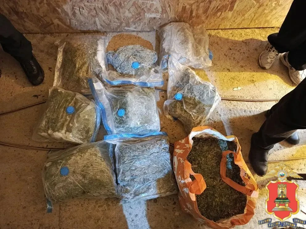В ходе обысков оперативники изъяли 68 полимерных пакетов с растительным веществом общей массой порядка 30 килограммов, 347 кустов конопли, удобрения, упаковочные материалы и электронные весы. В ходе исследования двух произвольно взятых пакетов эксперты подтвердили, что представленное растительное вещество является наркотическим средством каннабис массой 1712 грамма, что относится к крупному размеру.