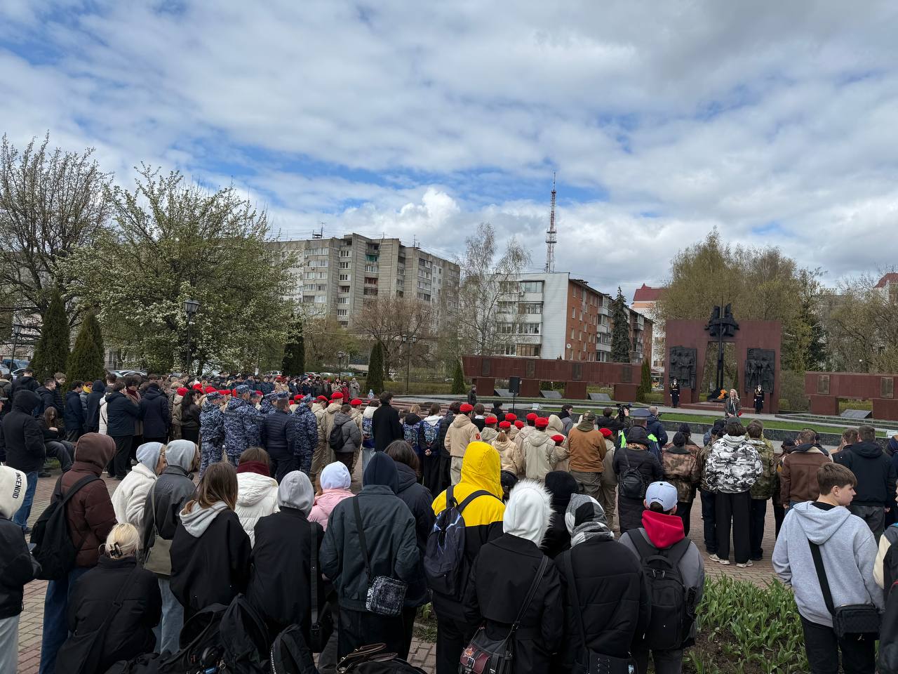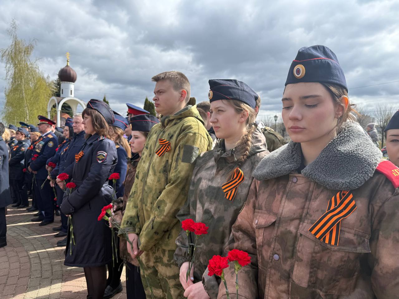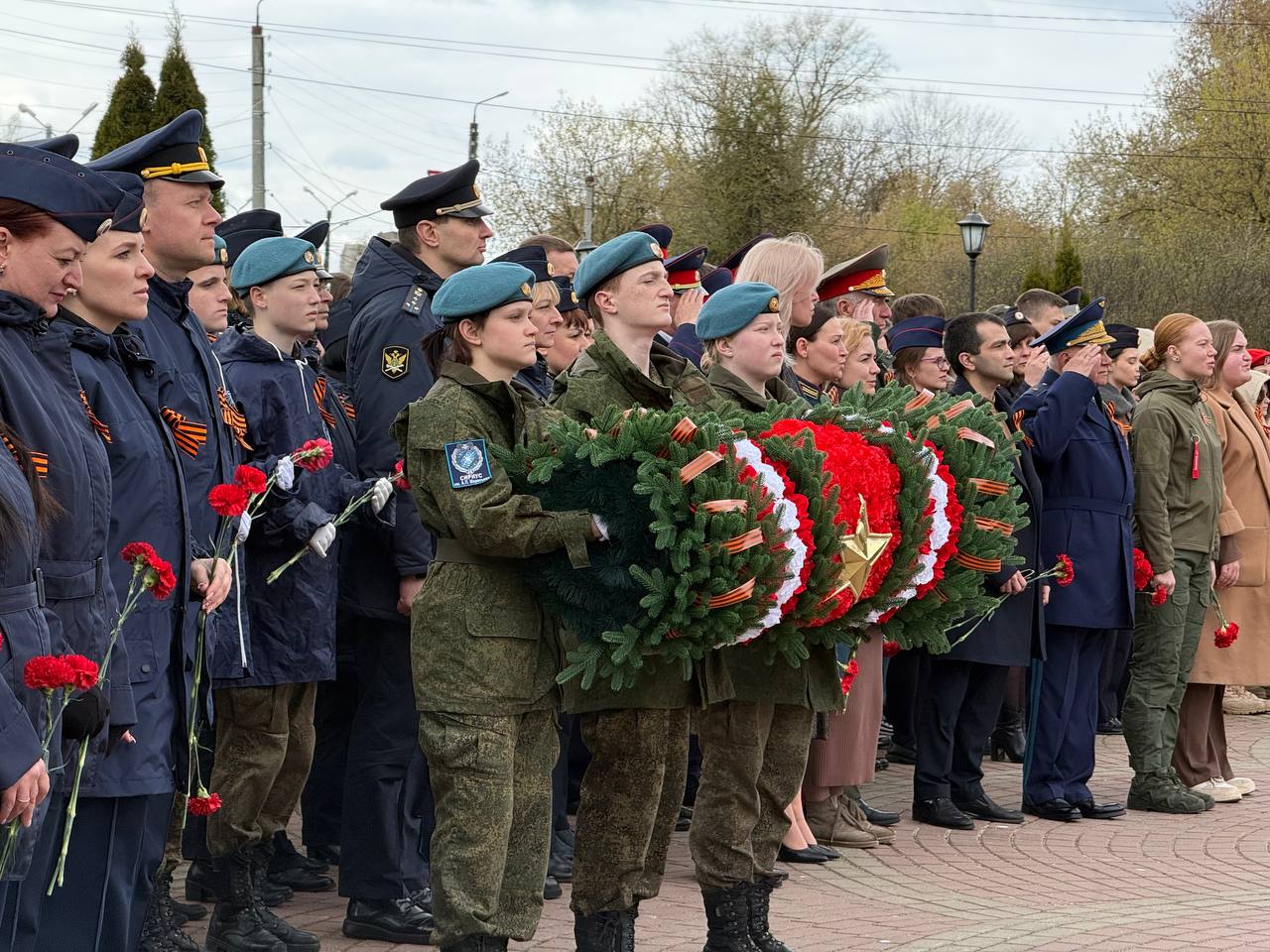 Участники митинга замерли в минуте молчания в знак глубокого уважения к подвигу героев Великой Отечественной войны. На Смоленском захоронении, где покоятся защитники тверской земли, эта традиция приобретает особую духовную силу, объединяя поколения.