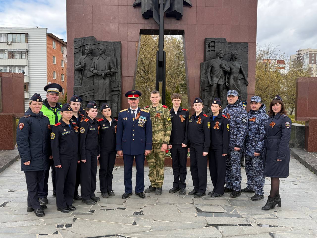 Сотрудники Госавтоинспекции и кадеты СОШ № 16 города Твери приняли участие в старте акции «Георгиевская лента»