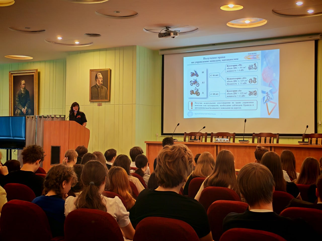 27 апреля 2026 года инспектор по пропаганде БДД отдела государственной инспекции безопасности дорожного движения УМВД России по городу Твери Татьяна Аверьянова встретилась с учащимися гимназии Тверского Государственного Медицинского Университета. Ребятам рассказали об основных причинах дорожно-транспортных происшествий, о «дорожных ловушках», которые могут поджидать их на проезжей части.