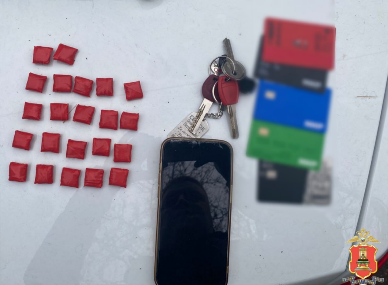 При досмотре задержанного гражданина сотрудники полиции нашли у него 22 свертка с порошком. В телефоне задержанного правоохранители обнаружили координаты и фотографии оборудованных им мест закладок.