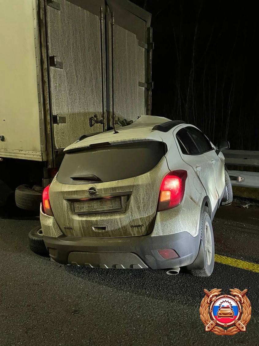 На трассе в Тверской области водитель Opel пытался обогнать фуру и врезался в нее.