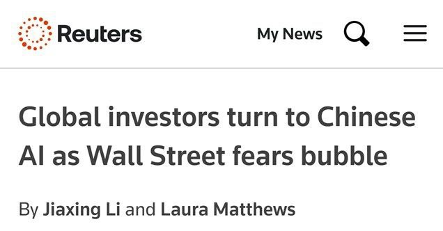 ГЛОБАЛЬНЫЕ ИНВЕСТОРЫ ОБРАЩАЮТСЯ К КИТАЙСКОМУ ИИ ИЗ-ЗА СТРАХА ПО ПОВОДУ ПУЗЫРЯ НА УОЛЛ-СТРИТ - Reuters