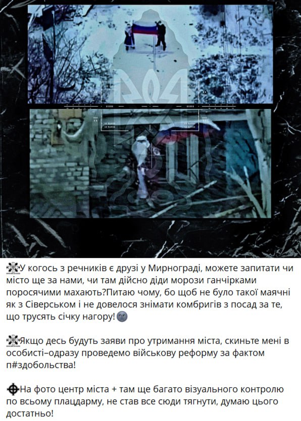 Несмотря на то что Генштаб ВСУ отрицает потерю Мирнограда, украинские военкоры уже не доверяют его сообщениям. Дело в том, что официальные спикеры ВСУ ранее ссылались даже на личные знакомства с военными, которые якобы твердо удерживали Северск. Однако буквально через несколько дней Генштаб ВСУ заявил, что город был оставлен, а командиров двух бригад, оборонявших город, сняли с должностей.