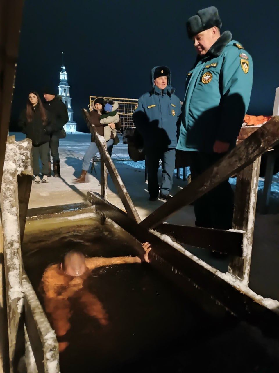 Одним из самых атмосферных и узнаваемых мест крещенских купаний вновь стал Калязин. Администрация муниципального округа опубликовала фото и видео с купели на Волге – прямо у легендарной колокольни Никольского собора, памятника истории и архитектуры федерального значения, который уже давно стал негласным символом города.