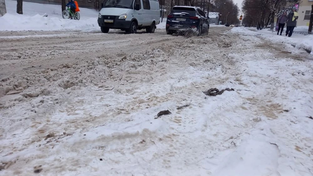 Выезжать из двора стало испытанием, делится возмущённая жительница улицы Зинаиды Коноплянниковой. Сугробы по обочинам выше капота, а посередине ледяная каша. Вчера сосед едва не застрял на повороте.